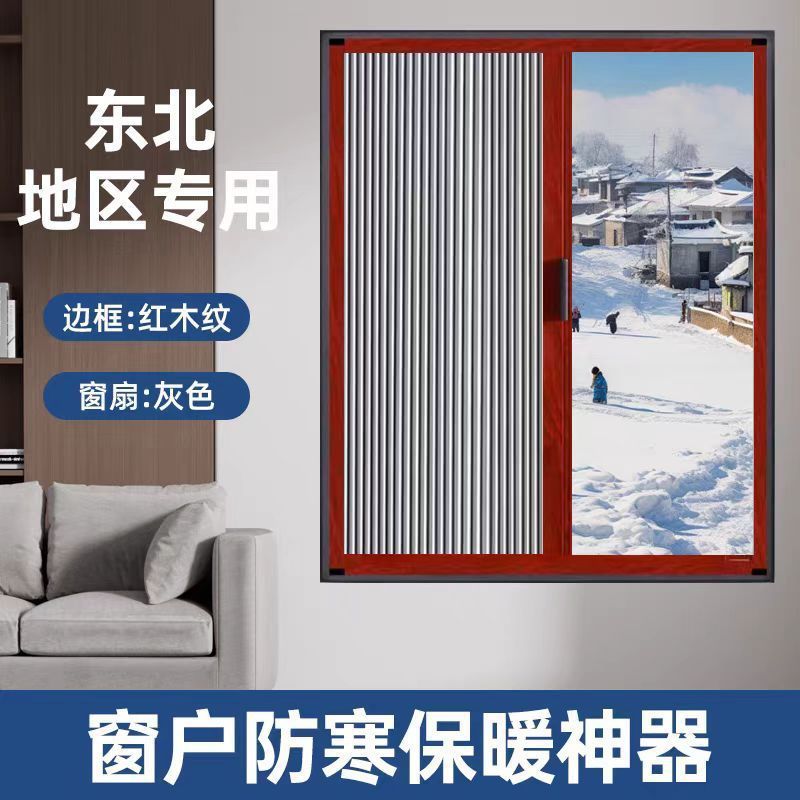 Утолщенная рама цвета красного дерева + полностью затемняющий серый сотовый (ветрозащитный + теплоизоляция)