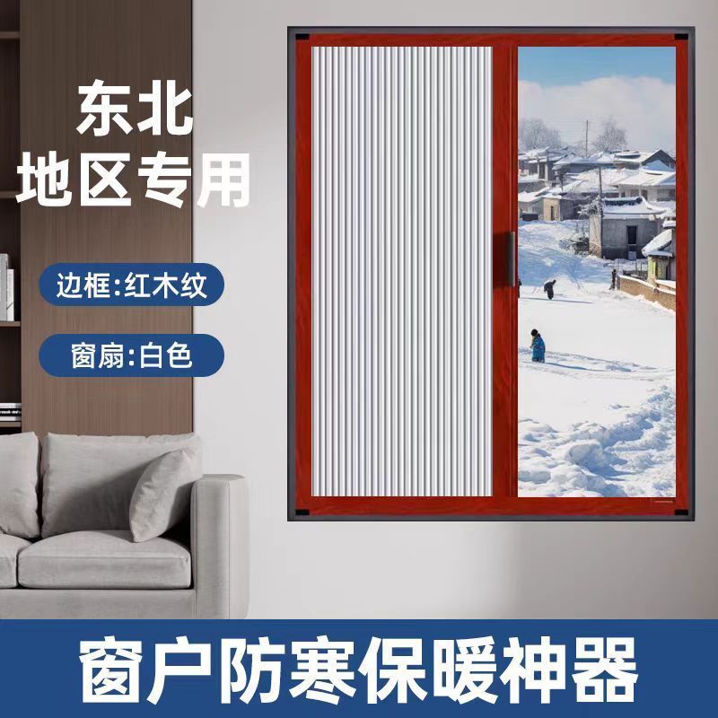 Утолщенная рама цвета красного дерева + полностью затемняющий белый сотовый материал (ветрозащитный + теплоизоляция)