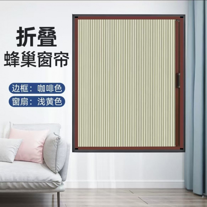 Коричневая утолщенная рама + полная затемняющая желтая сотовая (ветрозащита + теплоизоляция)