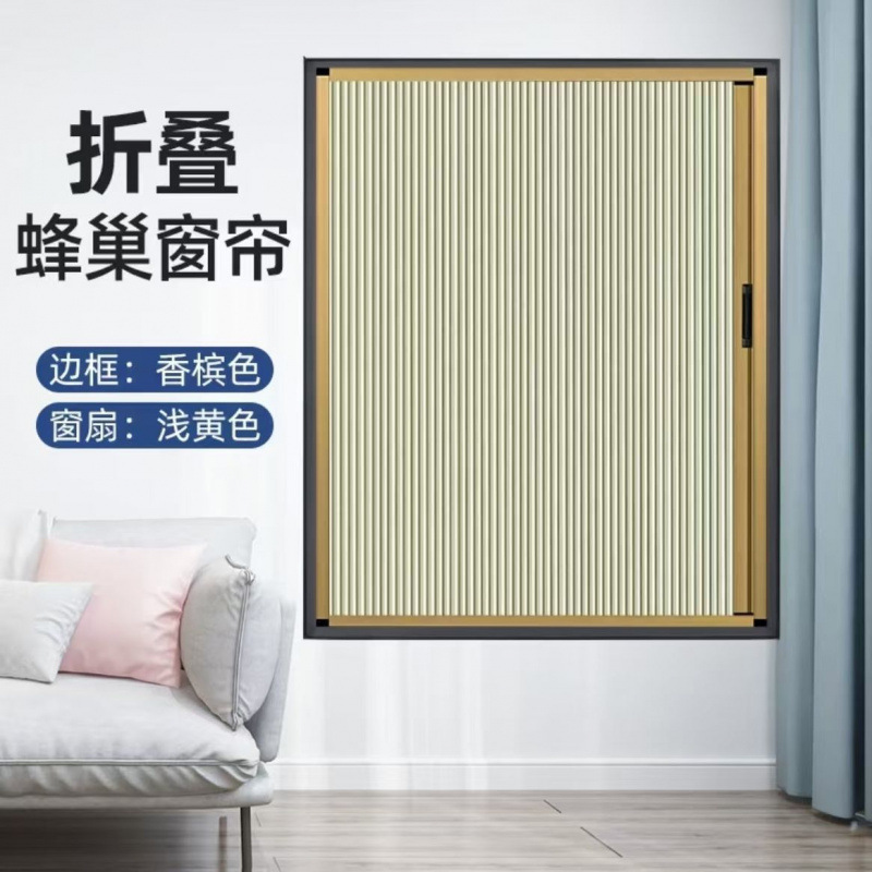 Утолщенная рама цвета шампанского + полностью затемняющий желтый сотовый (ветрозащитный + теплоизоляция)