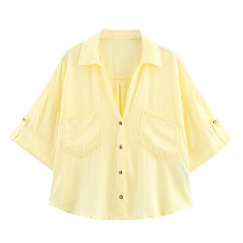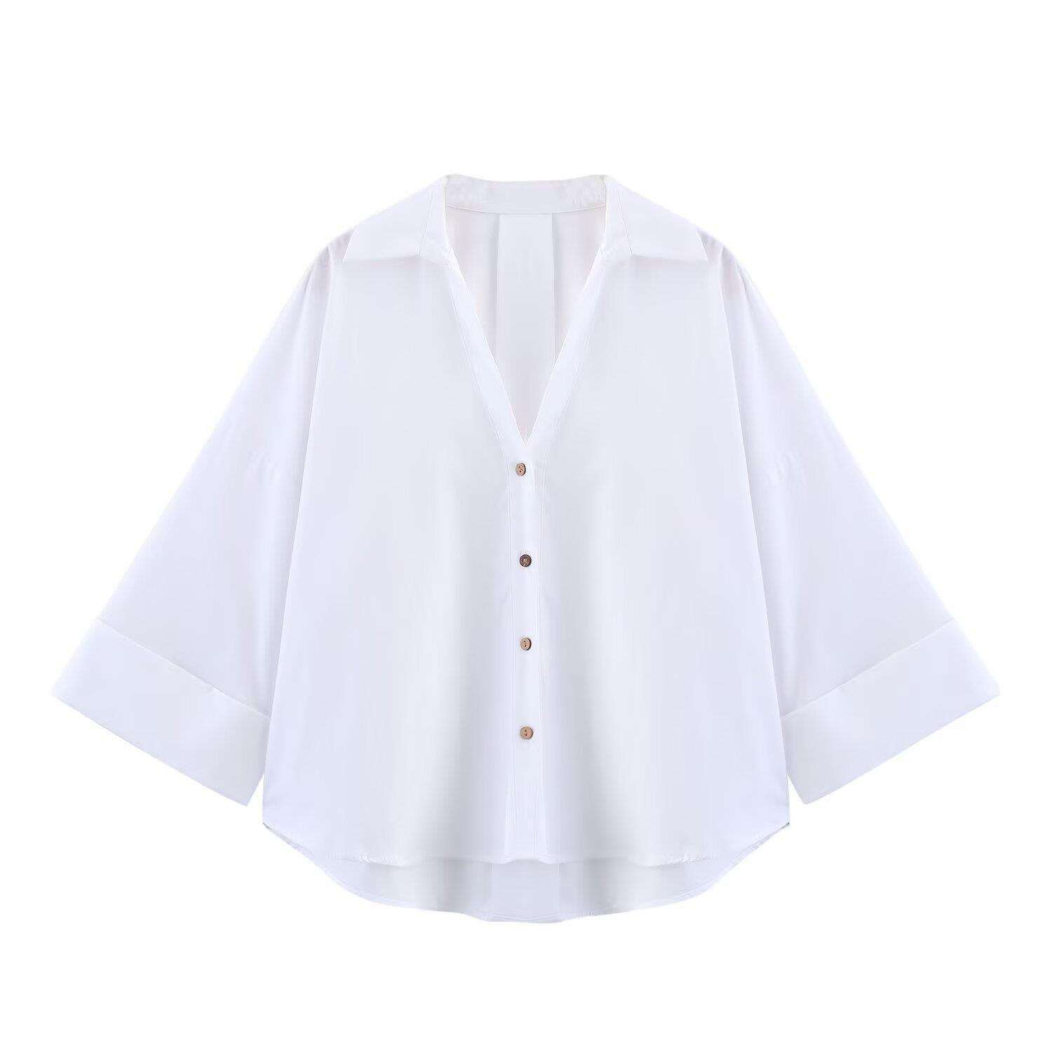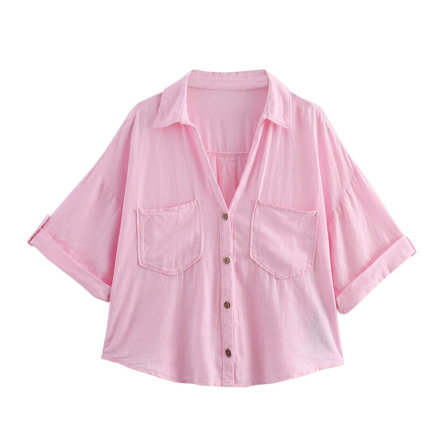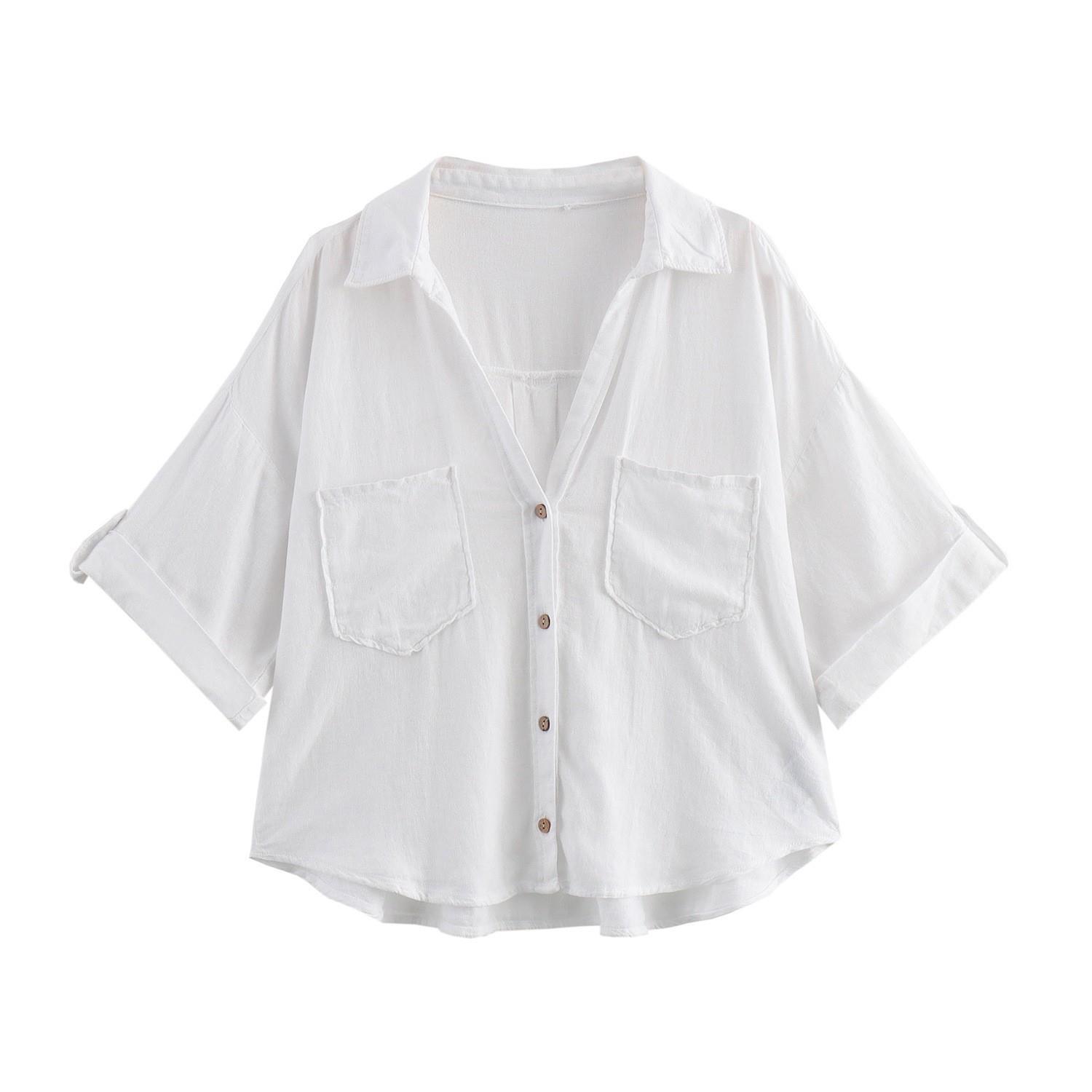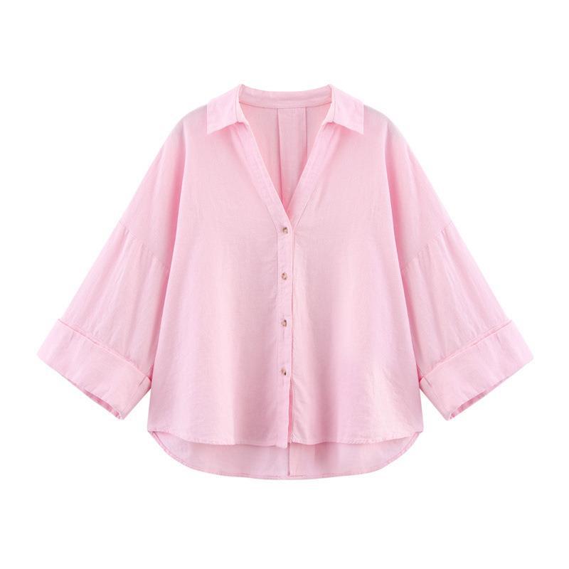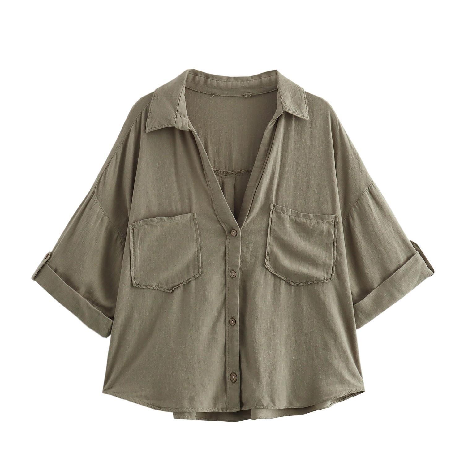 Главная страница > Универсальная и модная повседневная женская рубашка в полоску в европейском и американском стиле, свободного кроя, с рукавом три четверти, из хлопка и льна, с воротником, летняя.