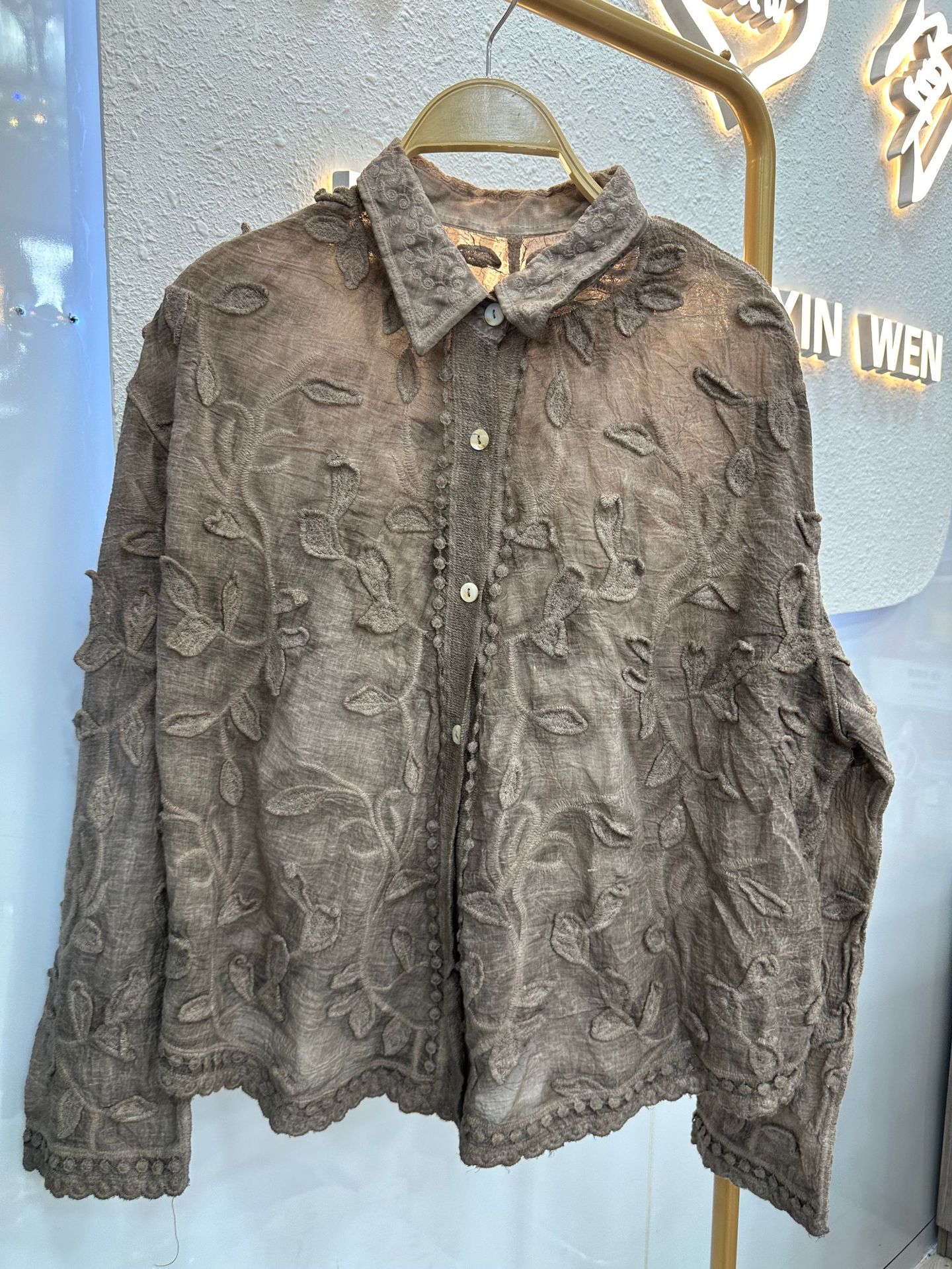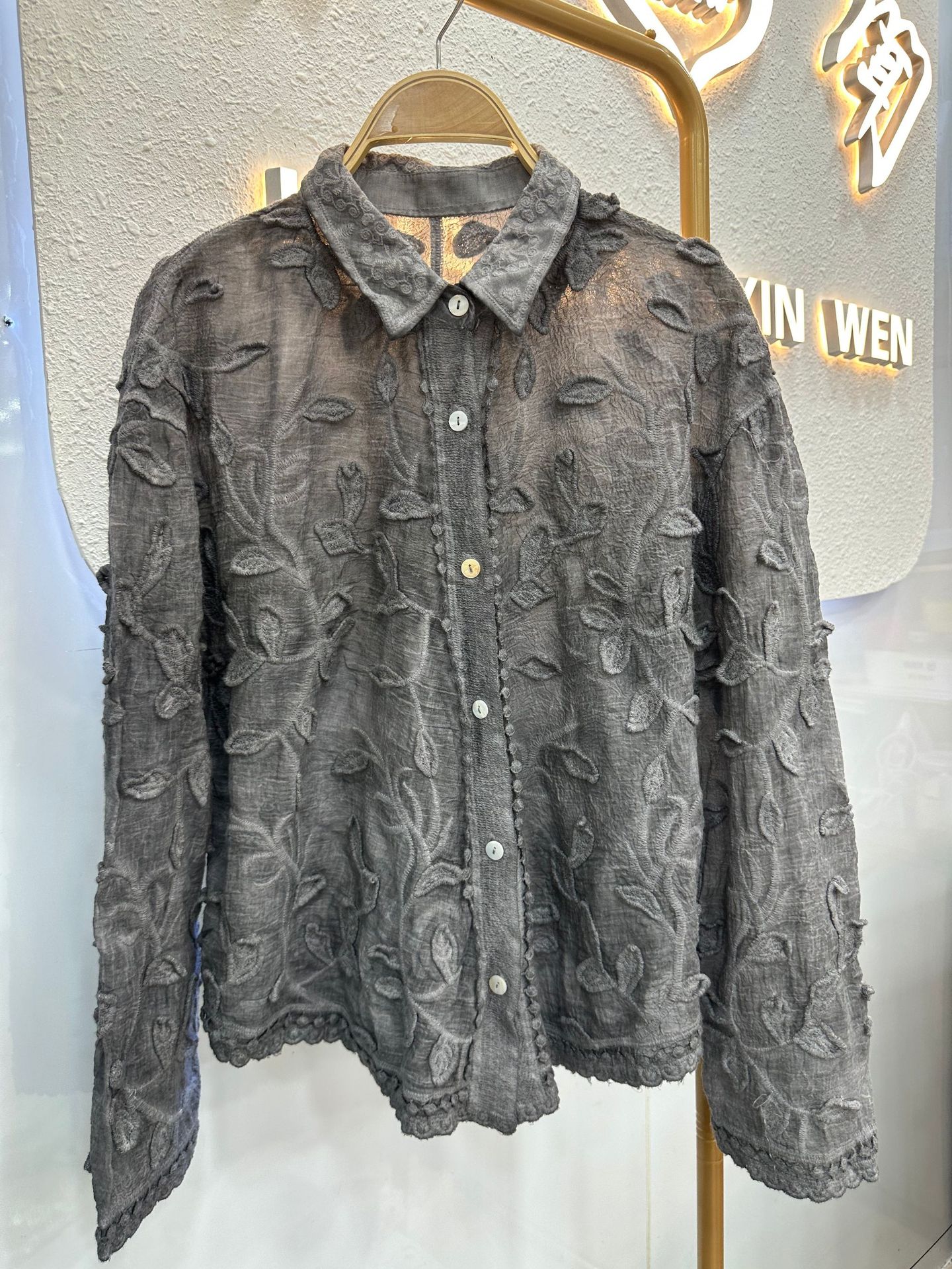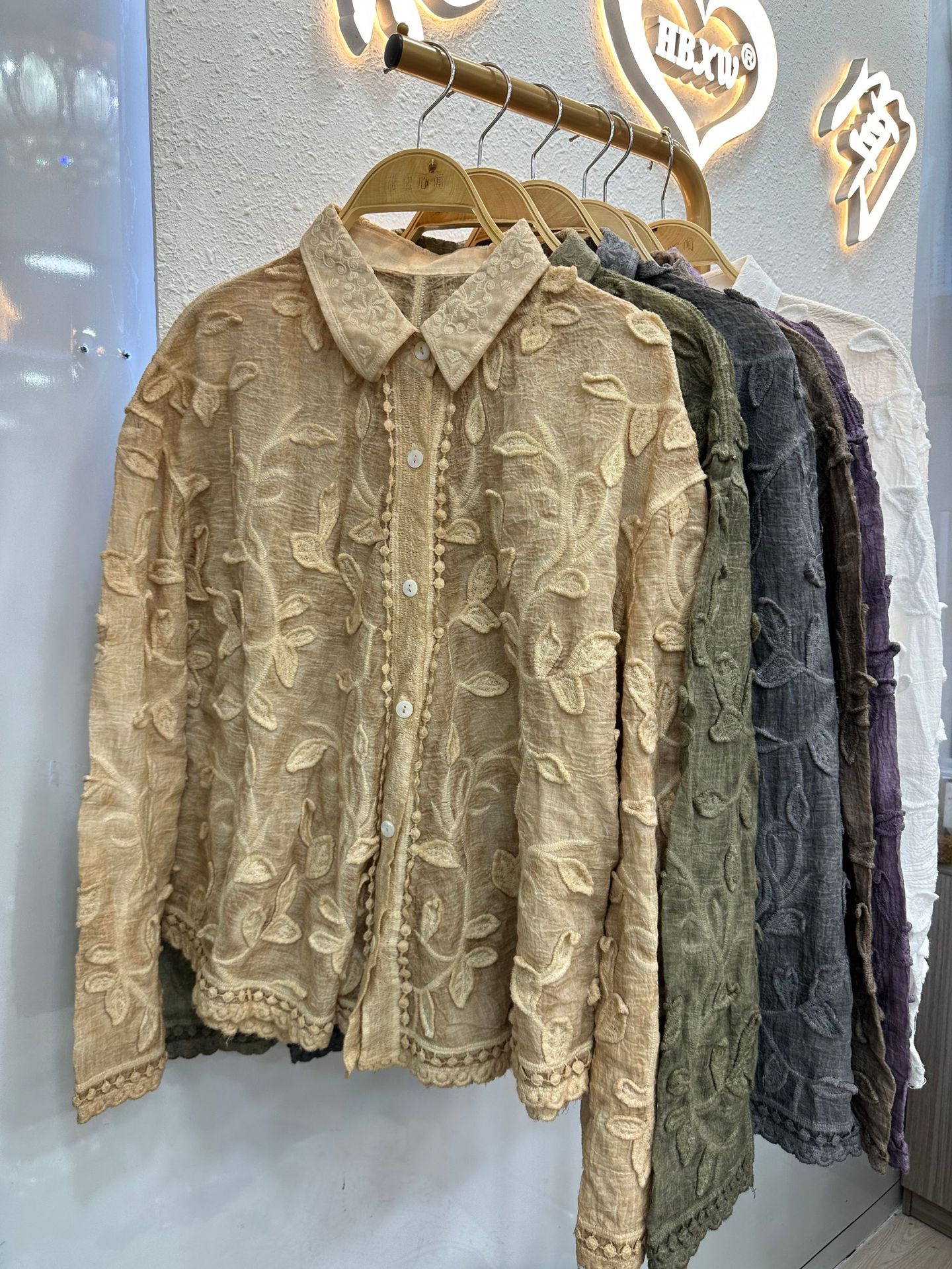 Главная страница > Французский романтический изысканный трехмерный жаккардовый отворот рубашка женская весна 2025 новый свободный ретро топ с длинными рукавами