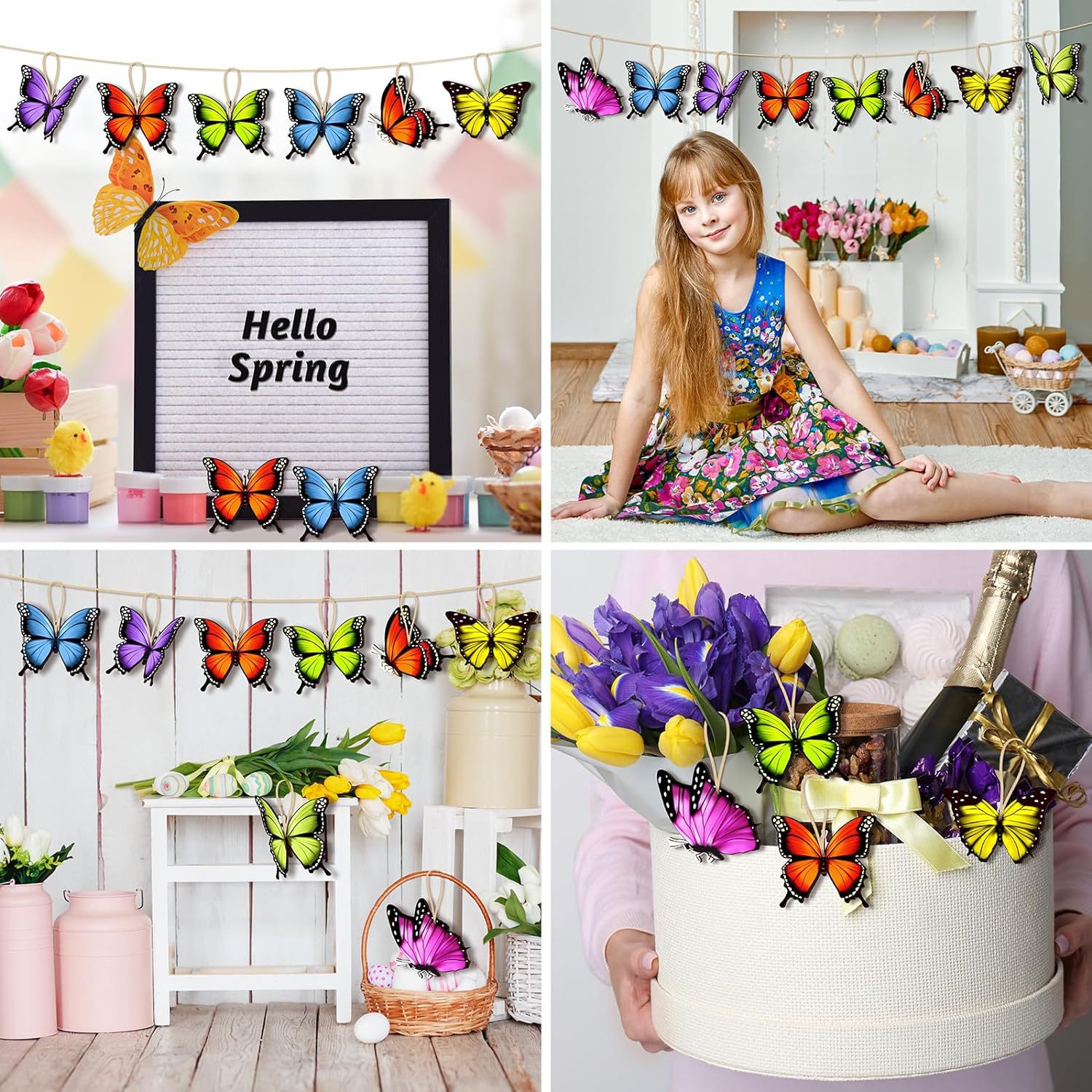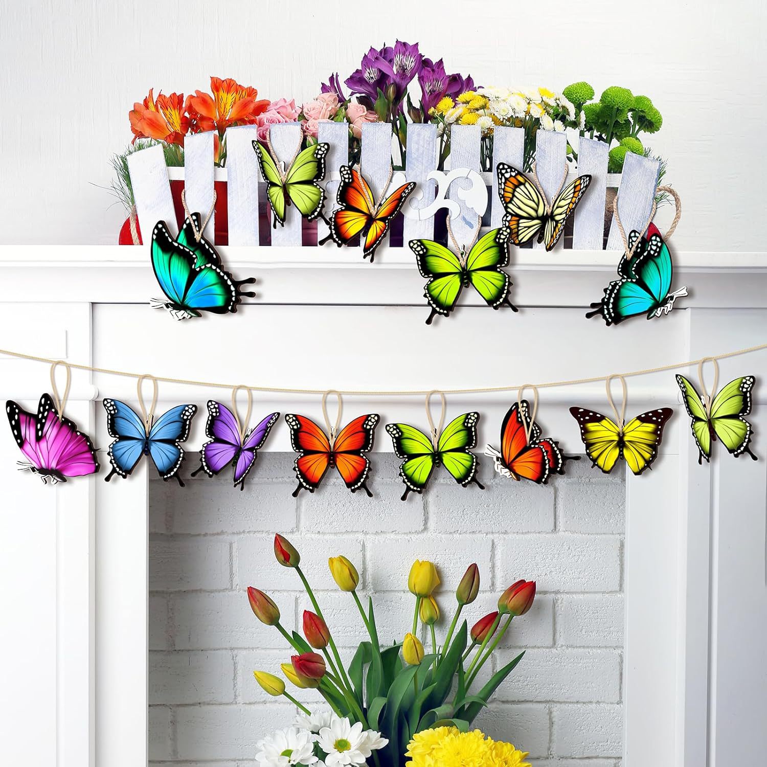 Пружинная бабочка деревянный орнамент подвеска бабочка деревянный логотип украшения для весеннего дерева фермерский дом товары для вечеринок