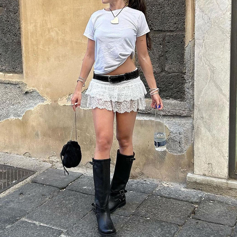 Главная страница > Трансграничная европейская и американская сладкая и пряная двухслойная кружевная юбка-тортик, маленькая дизайнерская жаккардовая короткая однотонная юбка с талией, женская одежда
