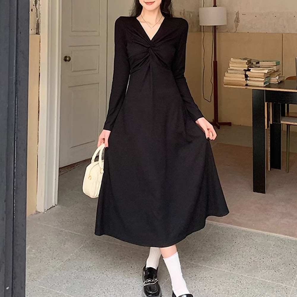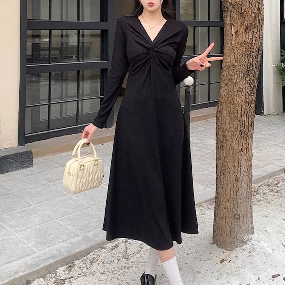 Главная страница > Женская одежда больших размеров, весна 2024, Новое Элегантное платье средней длины в Корейском стиле с высокой талией и высокой талией, модная юбка А-силуэтом