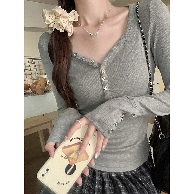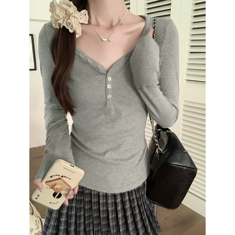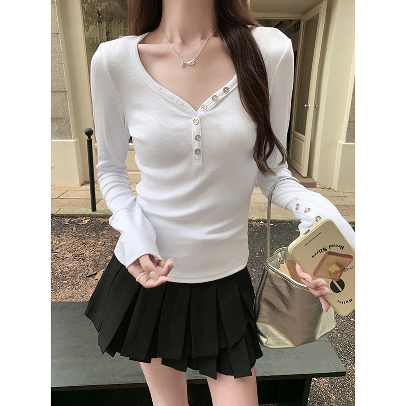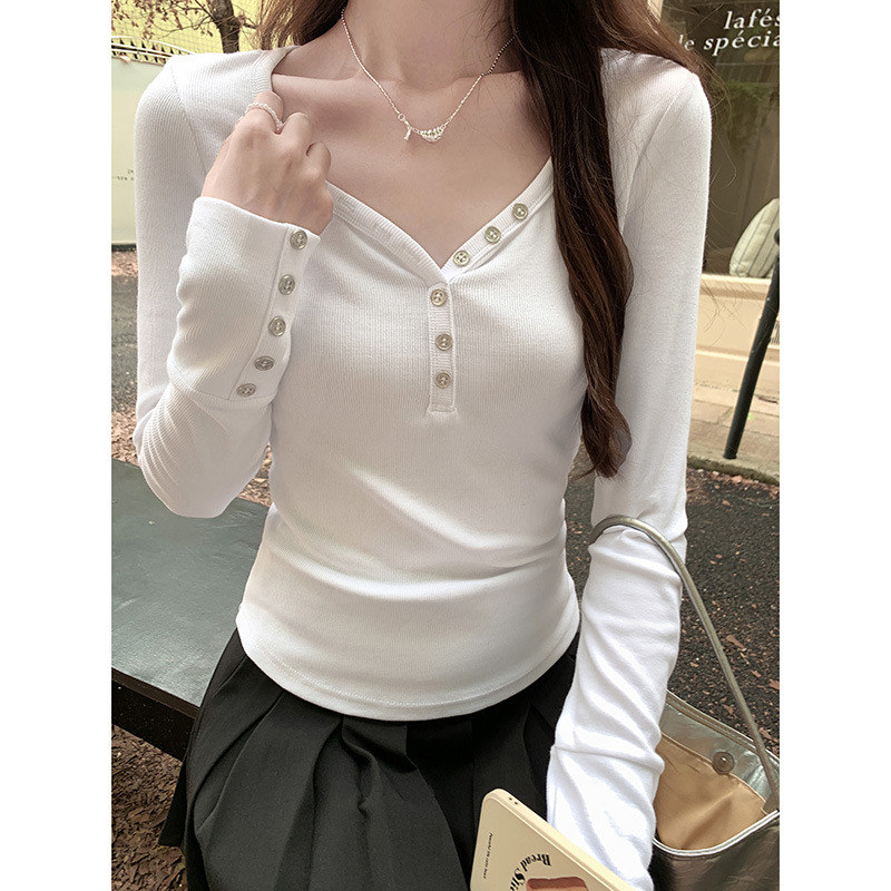 Главная страница > Пуговицы с воротником v-образным ощущением чистого дизайна с длинными рукавами и нижней рубашкой