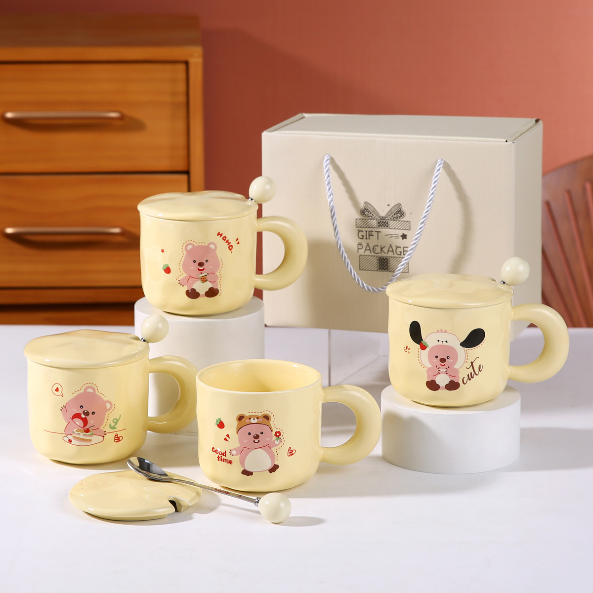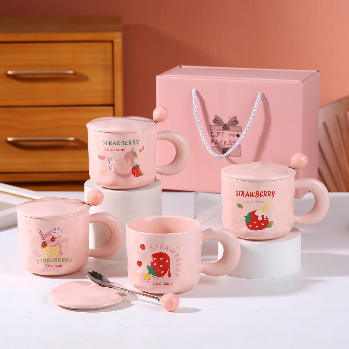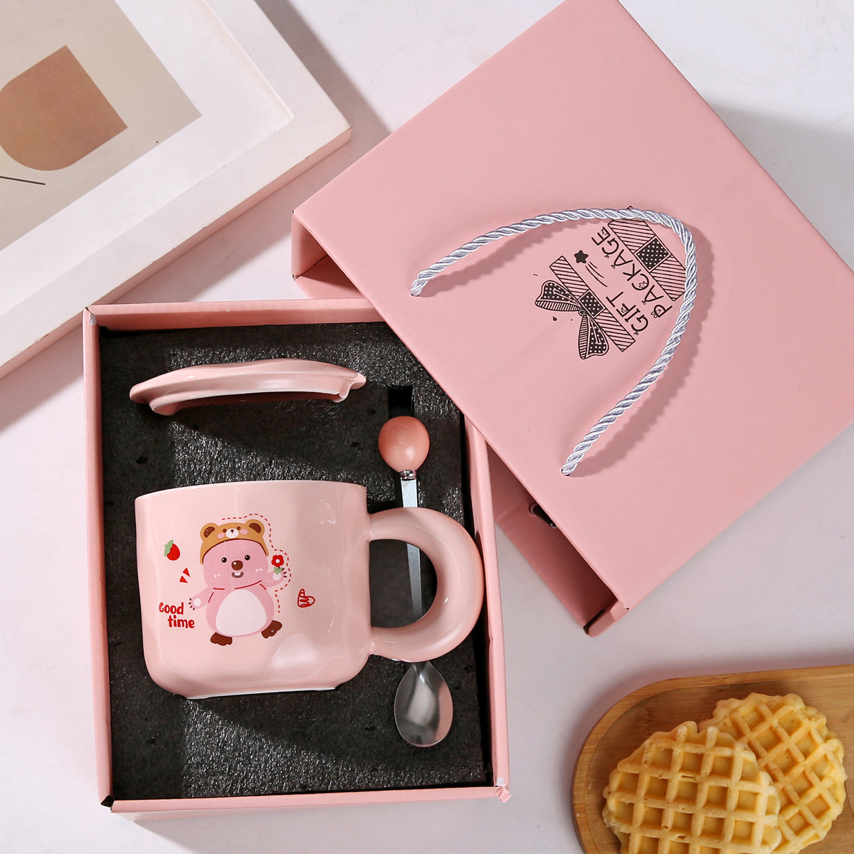Главная страница > Сувенирная кружка с крышкой и ложкой, керамическая чашка, красивая чашка для воды, практичный подарок на день рождения лучшему другу, подарок в магазин