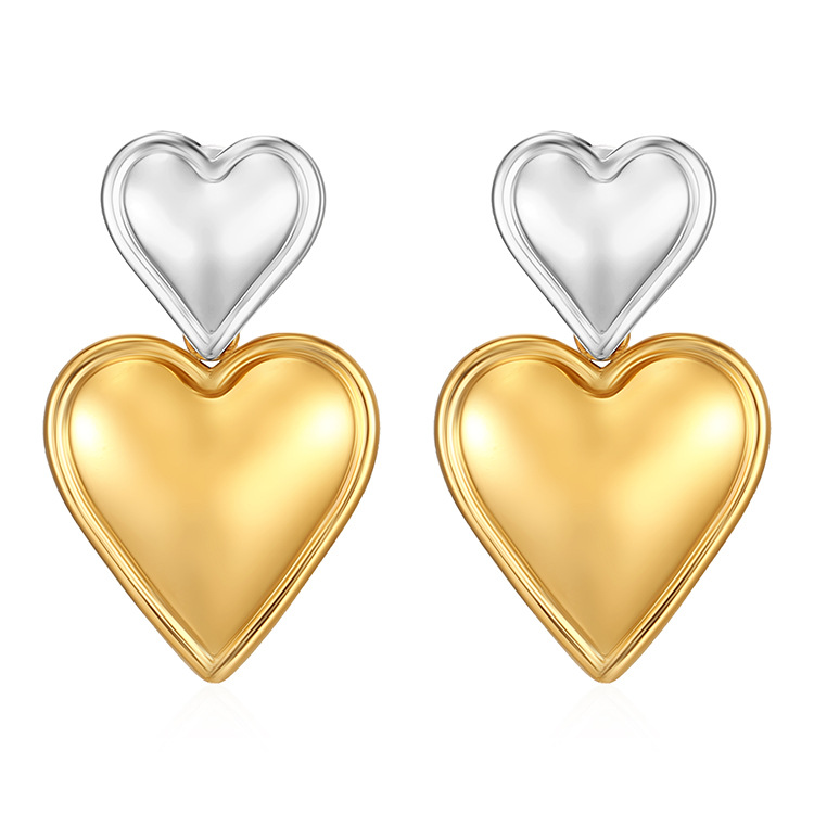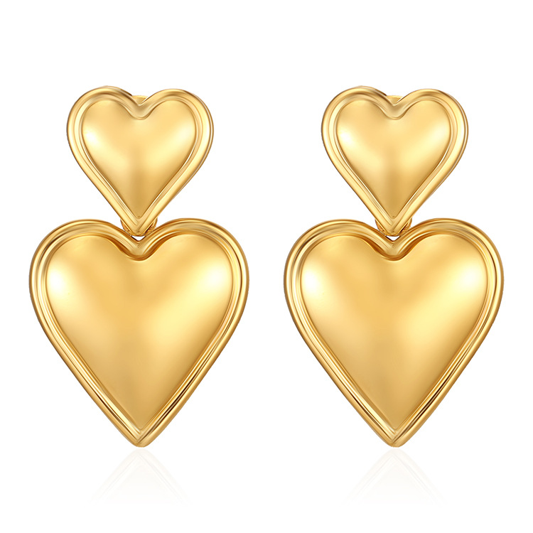 Будьте осторожны, золотые стальные серьги в форме сердца 2, золото MS-403