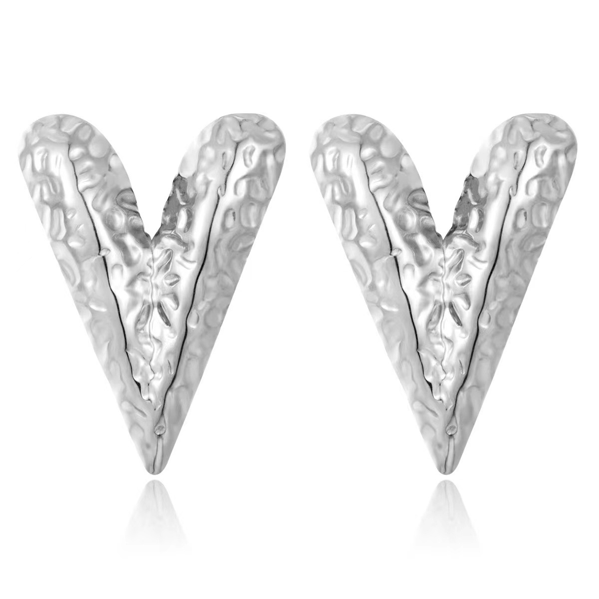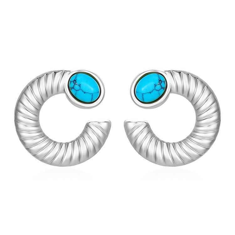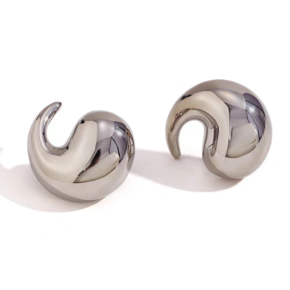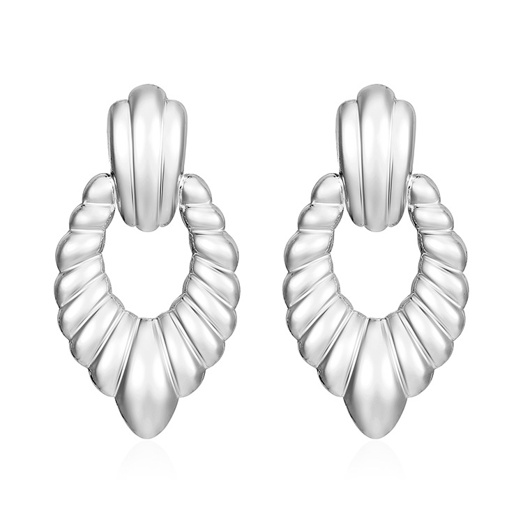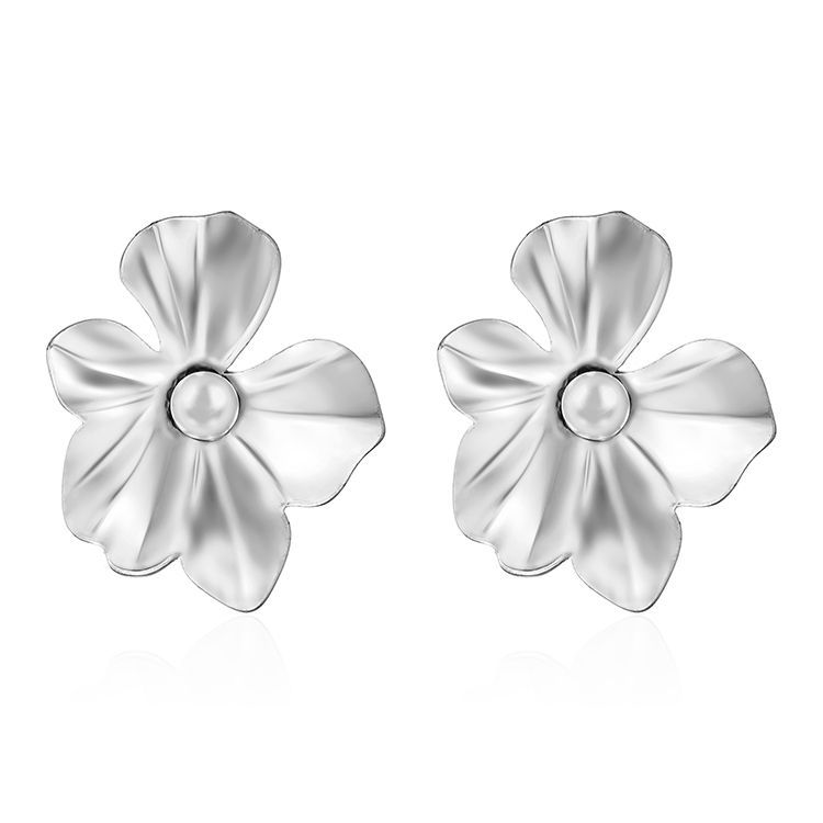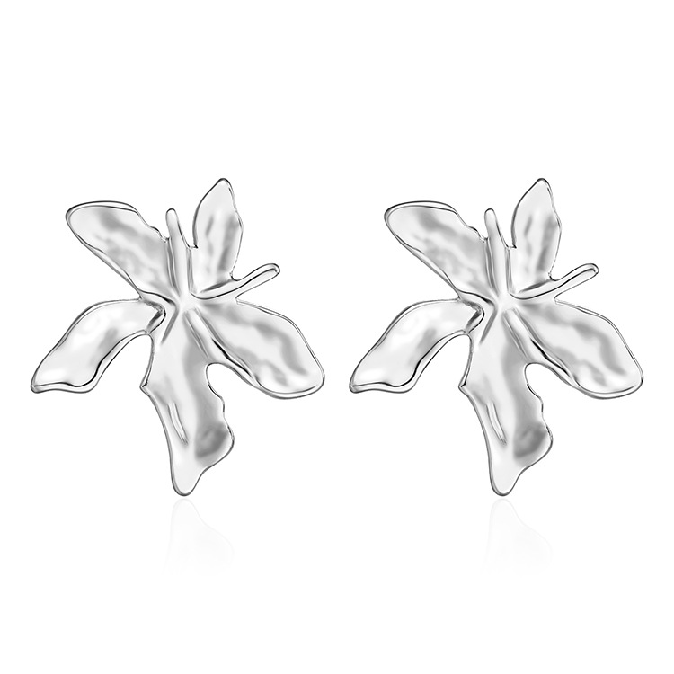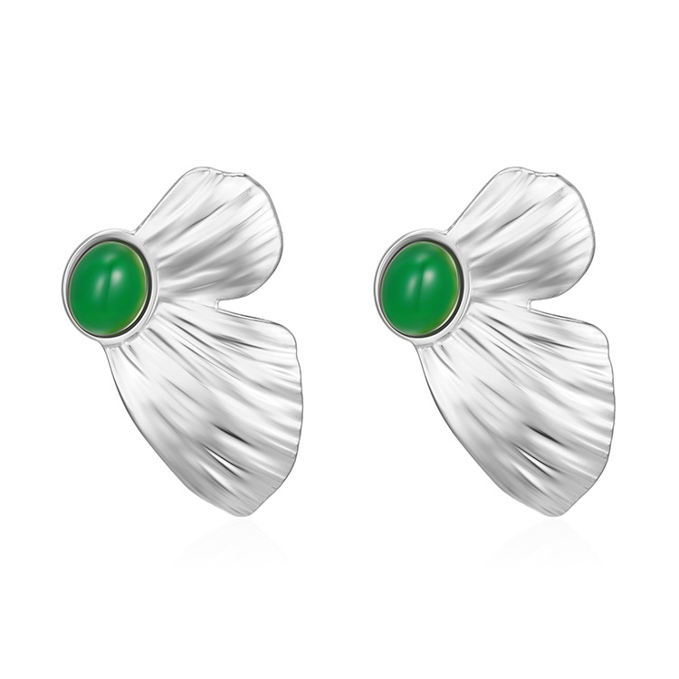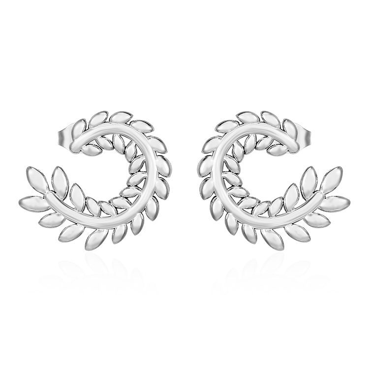 Серьги-лепестки с масляным тиснением стальной цвет MS-400