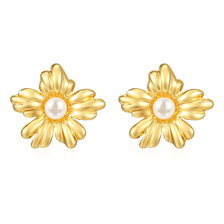 Серьги с жемчугом, инкрустированные цветком, стальной цвет MS-440