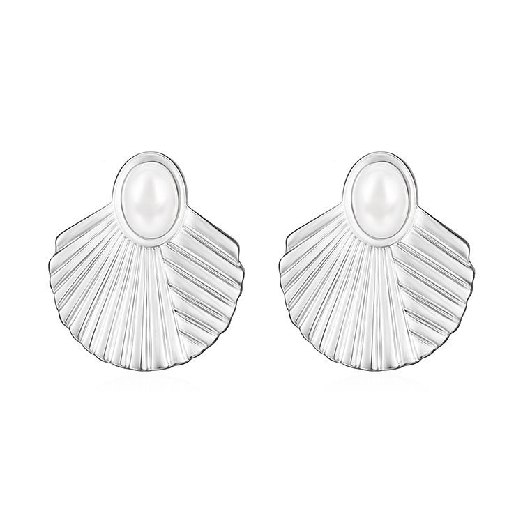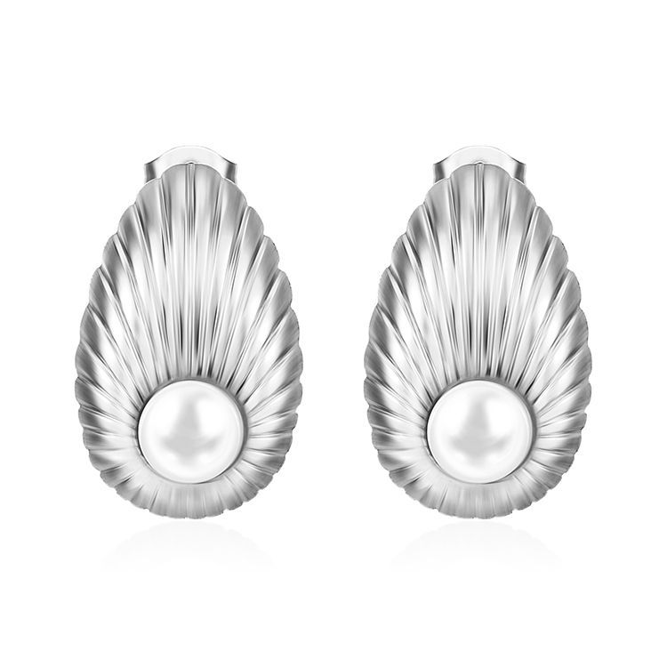 Серьги с инкрустацией жемчугом в виде ракушки стального цвета MS-445