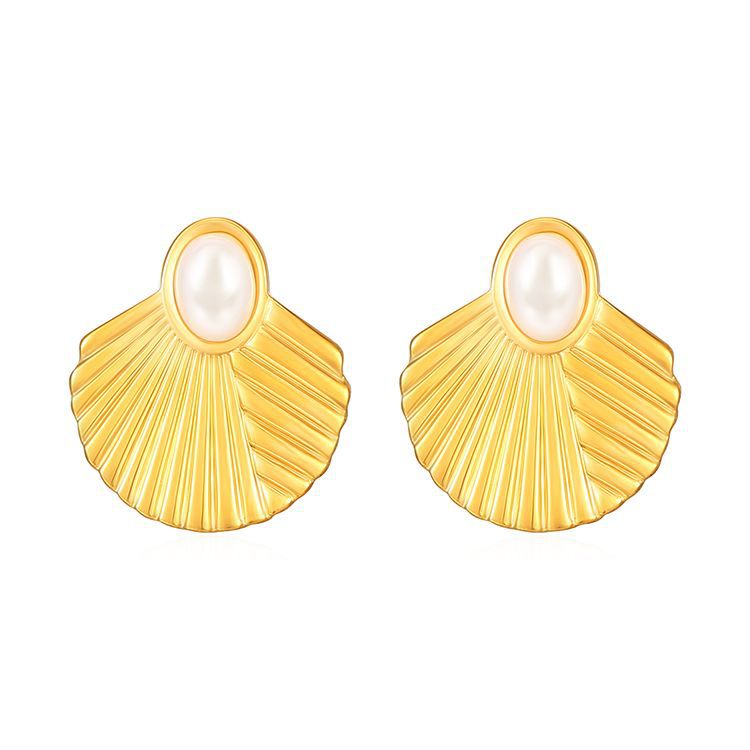 Серьги с инкрустацией жемчугом в виде ракушки золото МС-445