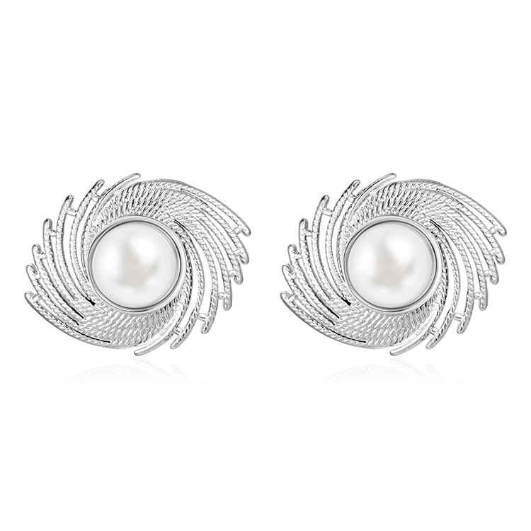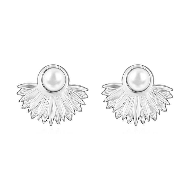 Серьги с инкрустацией жемчугом в форме веера стального цвета MS-451