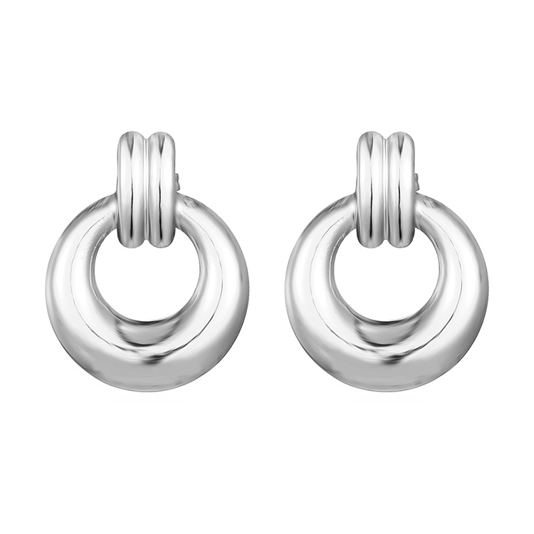 Двухслойные круглые серьги-подвески стальной цвет МС-460