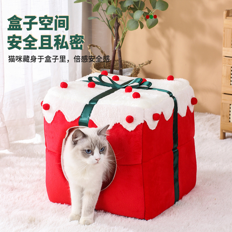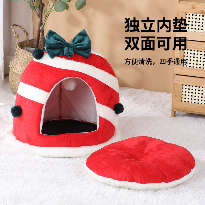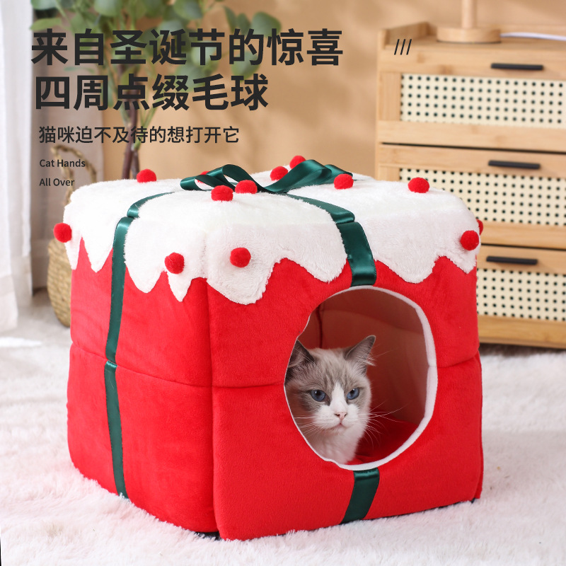 Главная страница > Рождественское милое зимнее теплое гнездо для домашних животных Four Seasons Универсальный кошачий дом Арктический флис Утолщенная флисовая подкладка для кошачьего гнезда