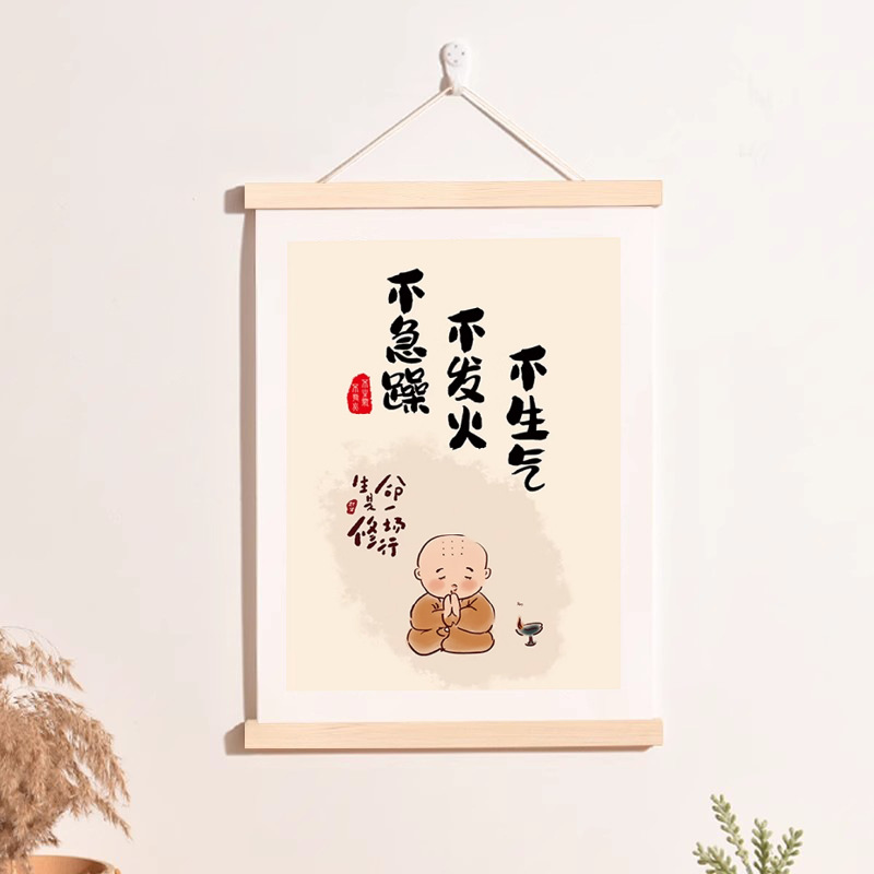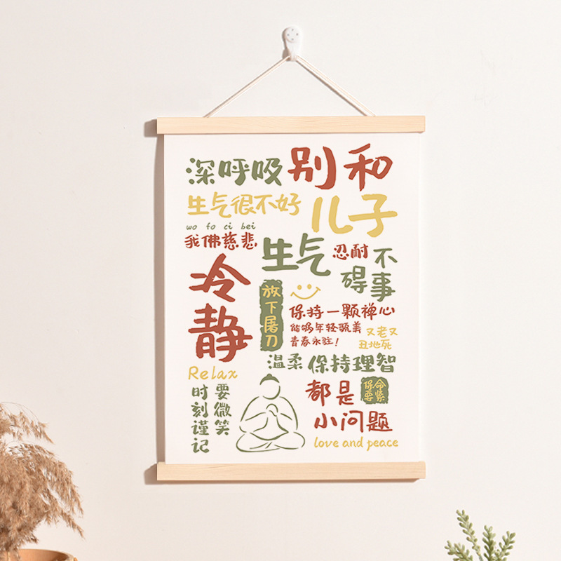 - 40cm * 60cm -Подвесной свиток из соснового дерева+холст HD+конопляная веревка-Подвесной свиток на холсте (свиток из цельного дерева+холст+бесплатные бесследные гвозди).
