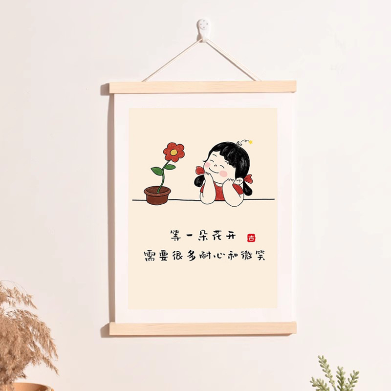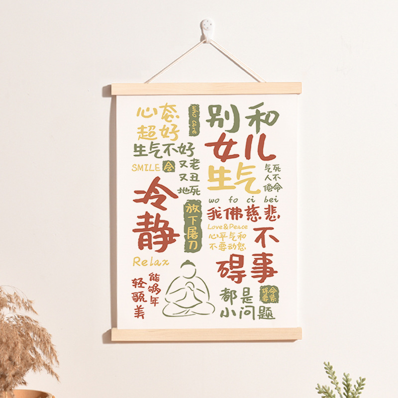 - 50cm * 70cm -Подвесной свиток из соснового дерева + холст HD + пеньковая веревка -Высокий холст (свиток из цельного дерева + холст + бесплатные бесследные гвозди).