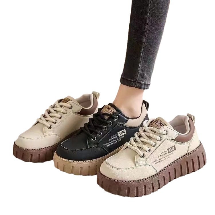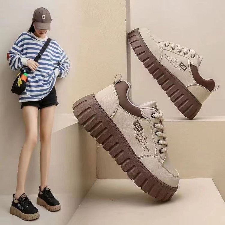 Главная страница > Женская обувь 2024 новые белые туфли на толстой подошве, кроссовки для спорта и отдыха, не утомляющие, увеличивающие платформу папы, круглый носок