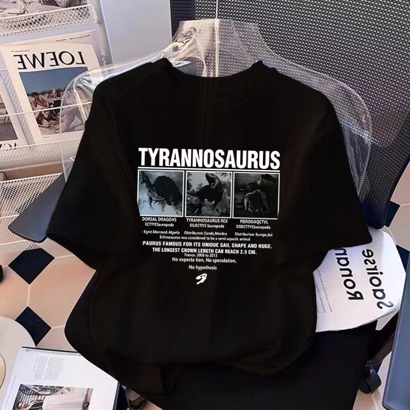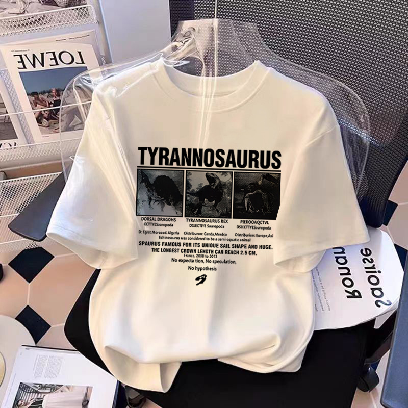 Чистый хлопок белого цвета [черный рисунок динозавра TYRANNOS]