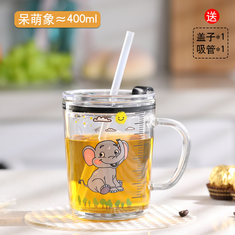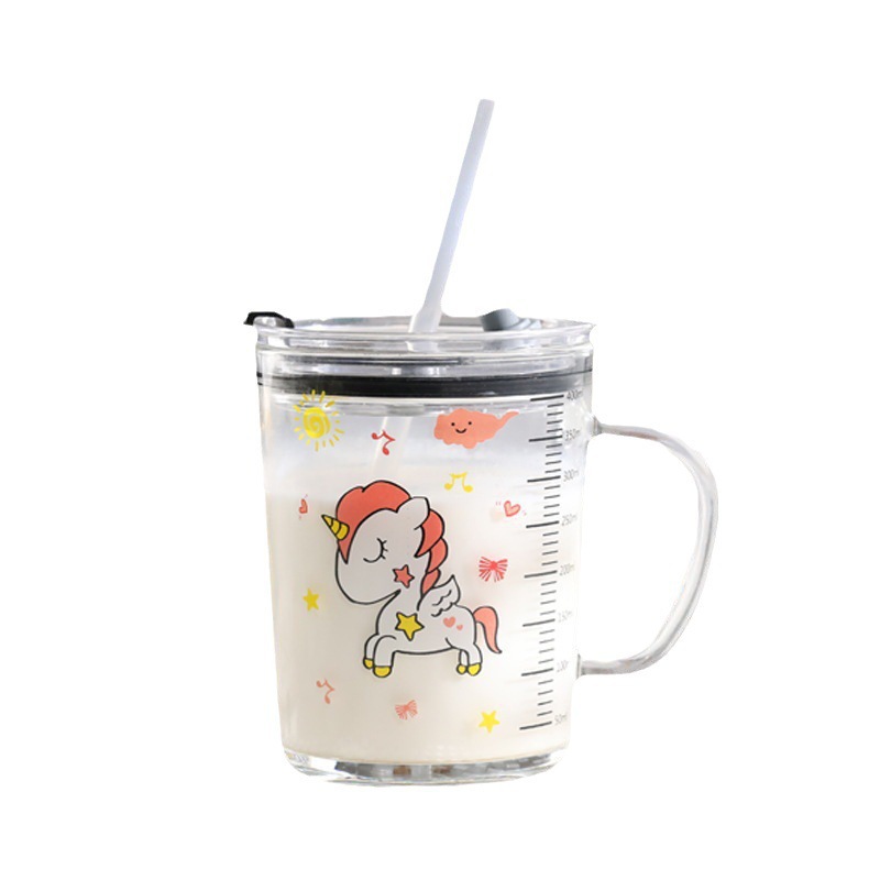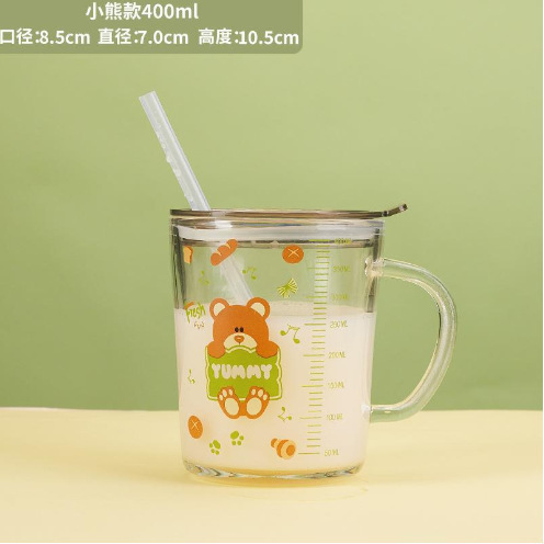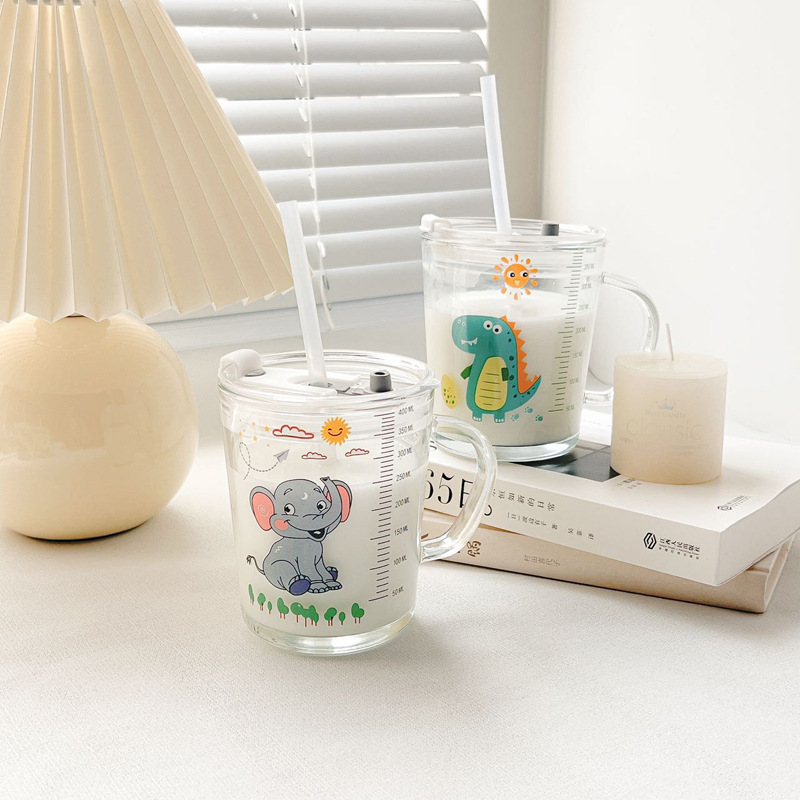 Главная страница > Чашка молока с шкалой Двойной стакан для питья Бытовая соломка чашка мультфильм наклейка чашка прозрачная стеклянная чашка для приготовления пищи