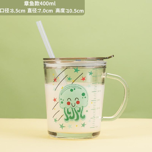 Чашка молока с шкалой Двойной стакан для питья Бытовая соломка чашка мультфильм наклейка чашка прозрачная стеклянная чашка для приготовления пищи