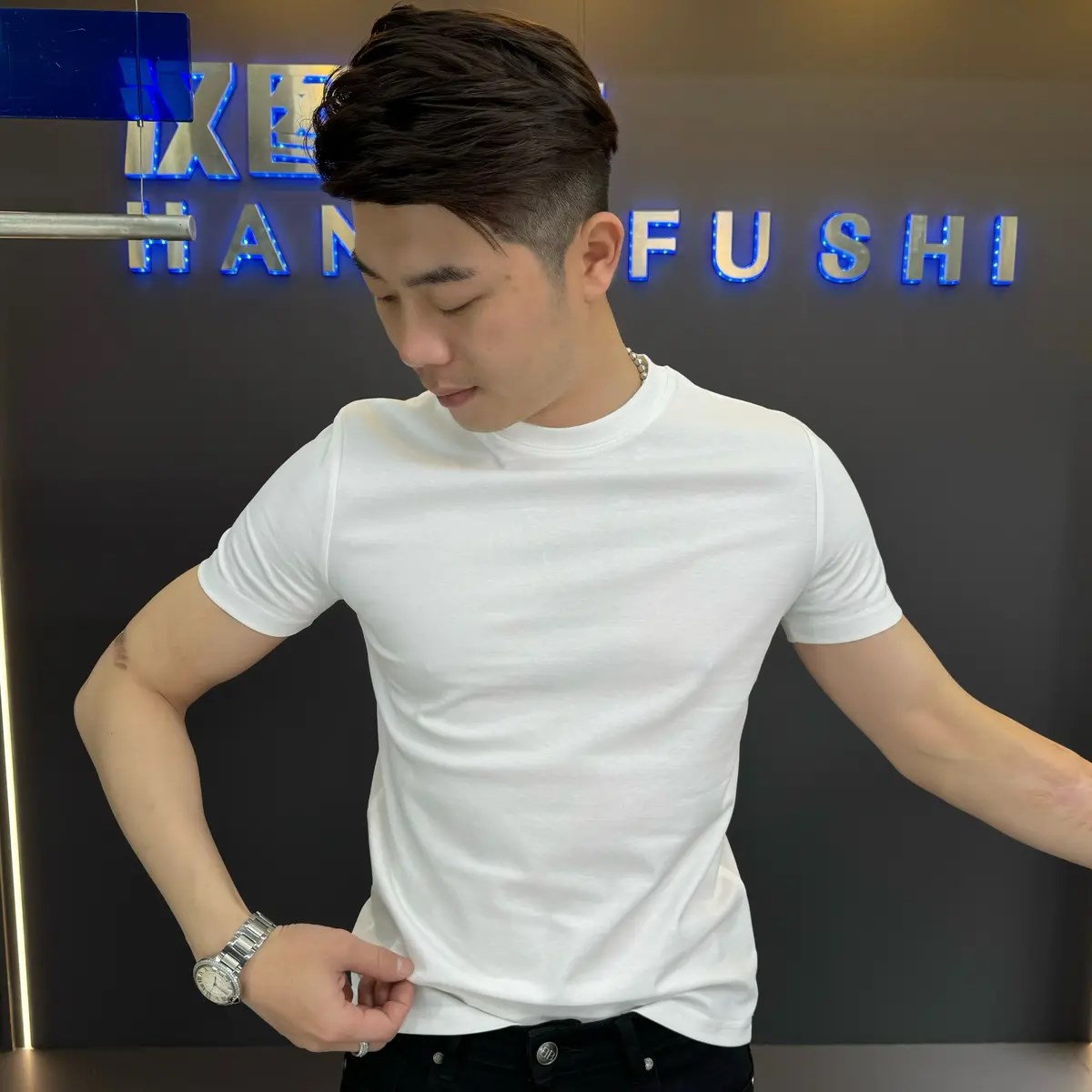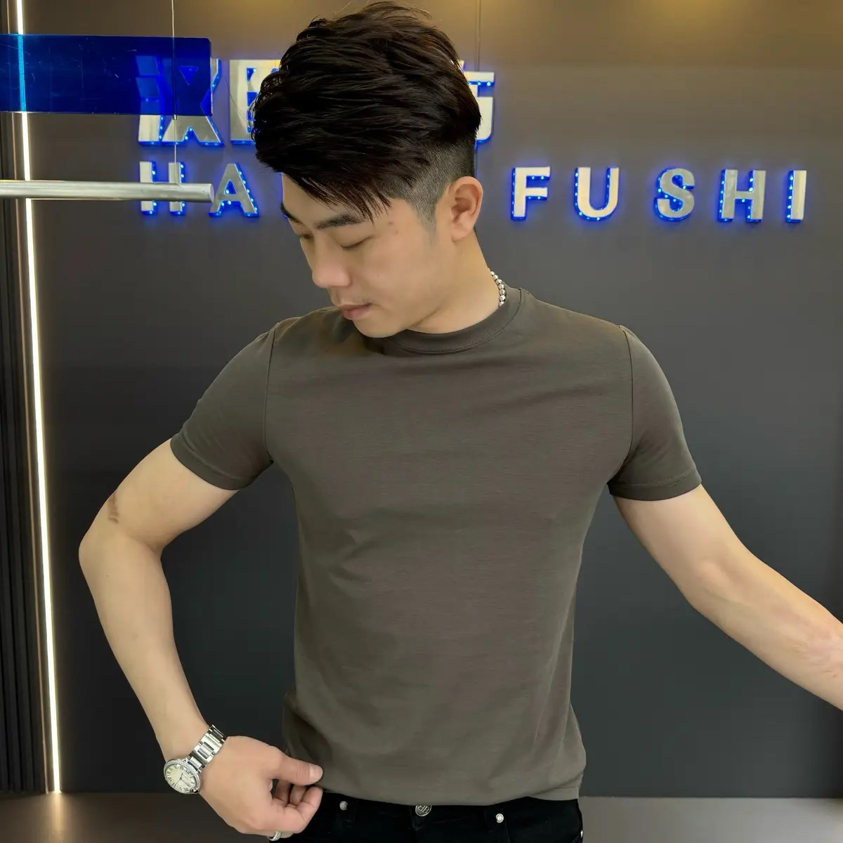 Модная мужская футболка 2025 года: летняя, приталенная, универсальная, однотонная, с круглым вырезом, простая и стильная