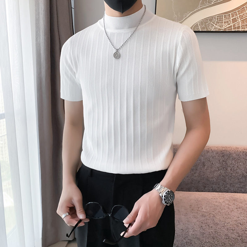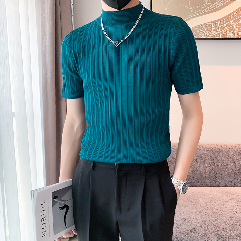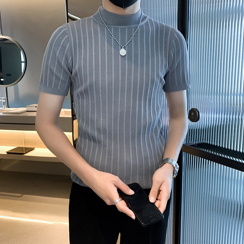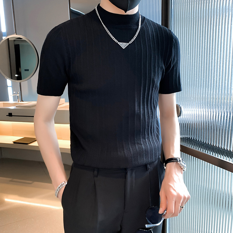 Главная страница > Летняя новая корейская версия тонкая мужская трикотажная футболка с коротким рукавом с половинным вырезом