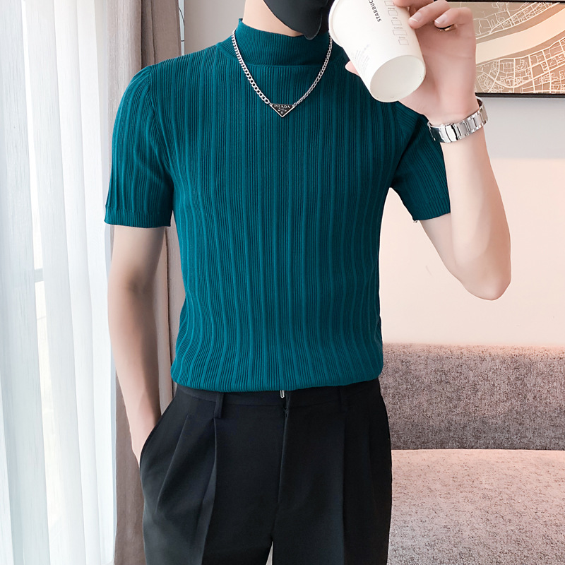 Летняя новая корейская версия тонкая мужская трикотажная футболка с коротким рукавом с половинным вырезом