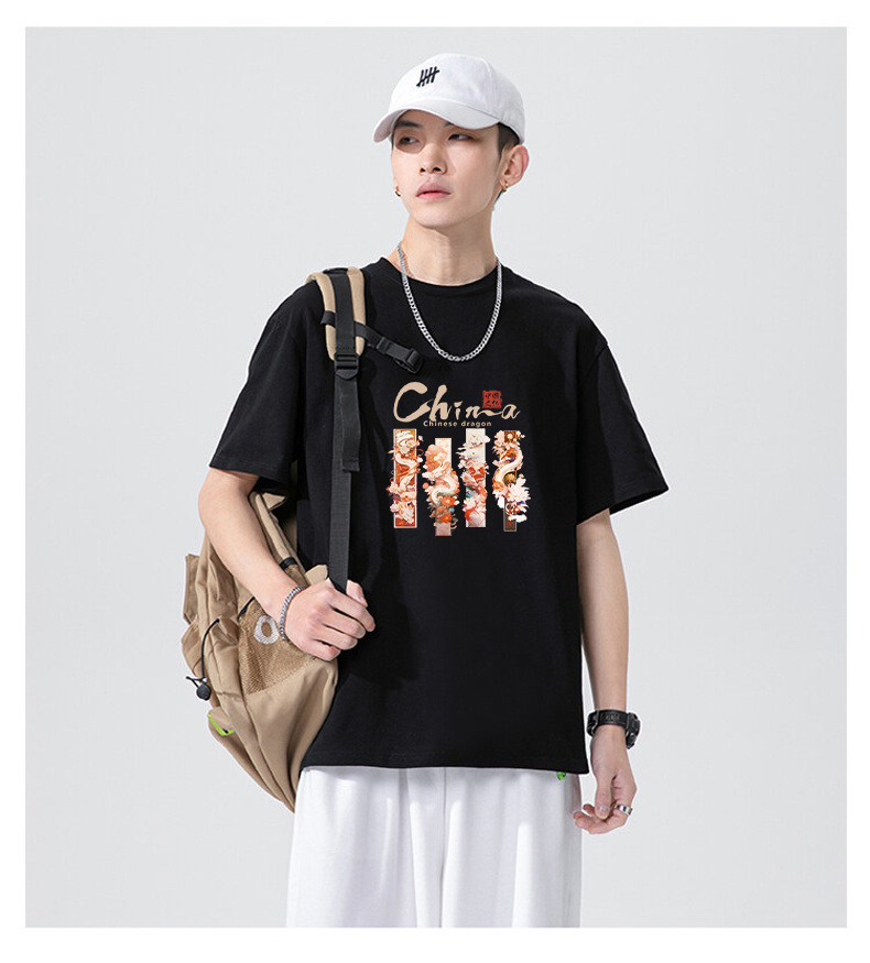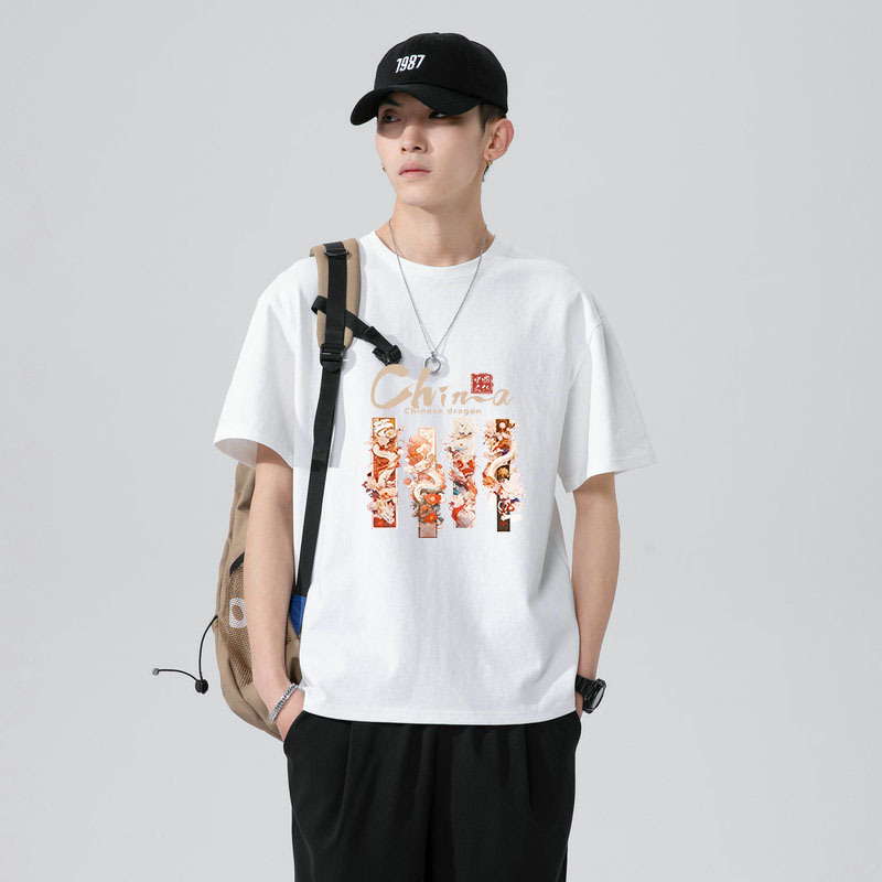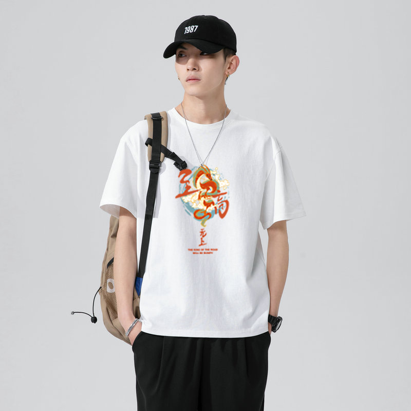 Главная страница > Футболка с короткими рукавами, Мужская Летняя мужская Свободная брендовая Универсальная футболка большого размера из чистого хлопка в китайском стиле, Базовая рубашка