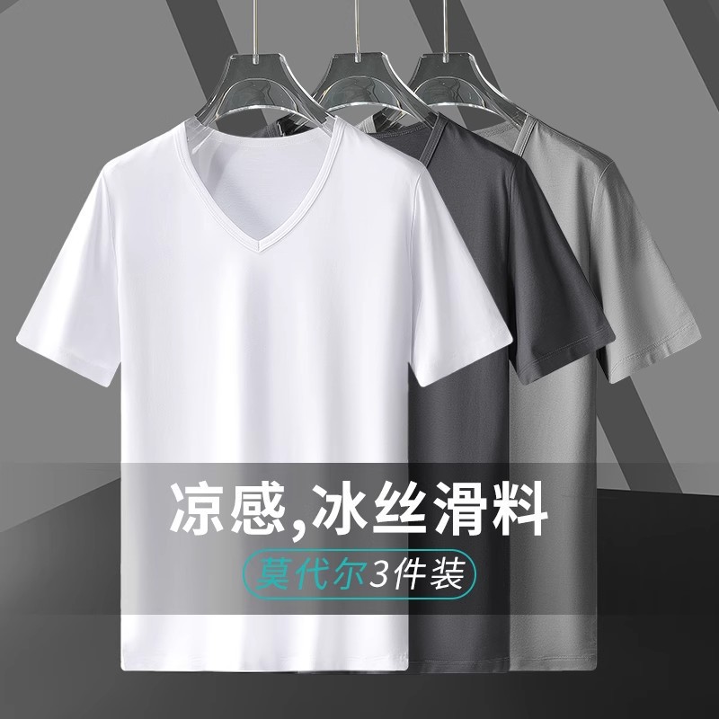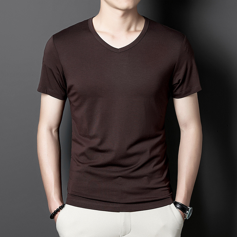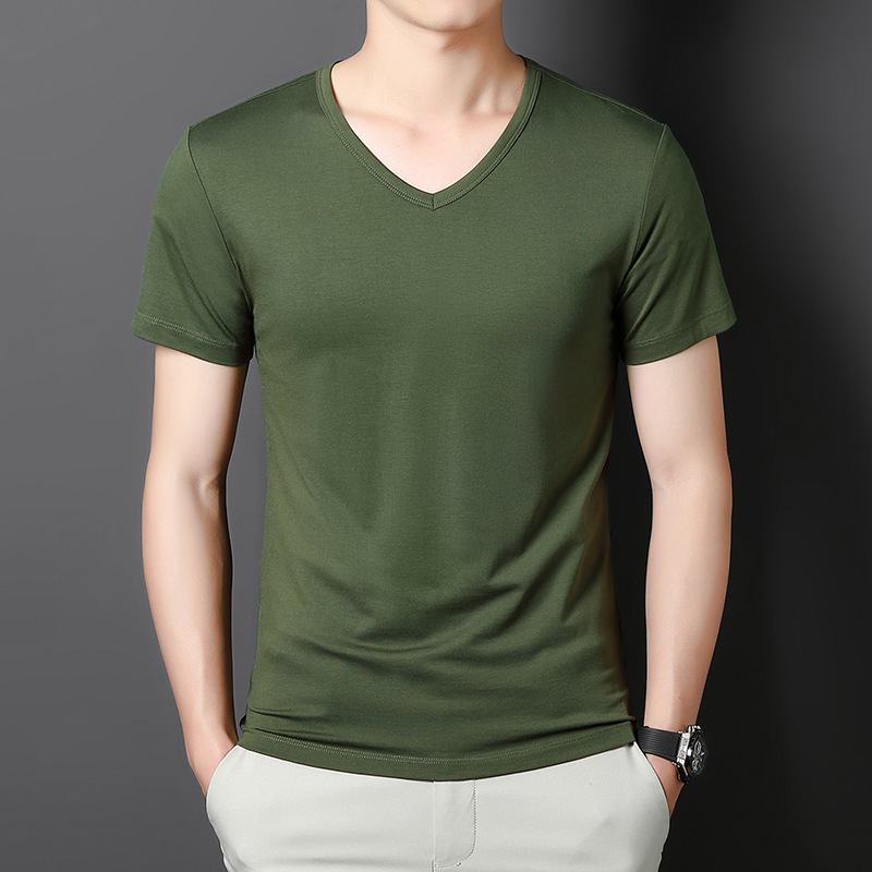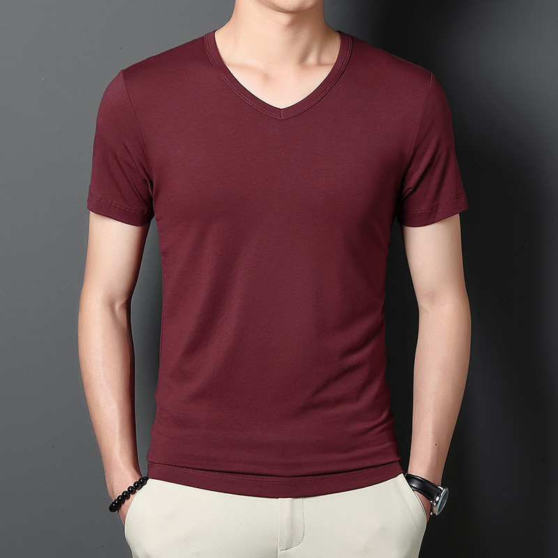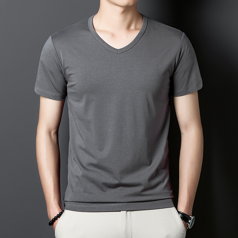 Главная страница > Мужская футболка из модала, хлопка и ледяного шелка, короткий рукав, лето 2024, однотонная, V-образный вырез, тонкая