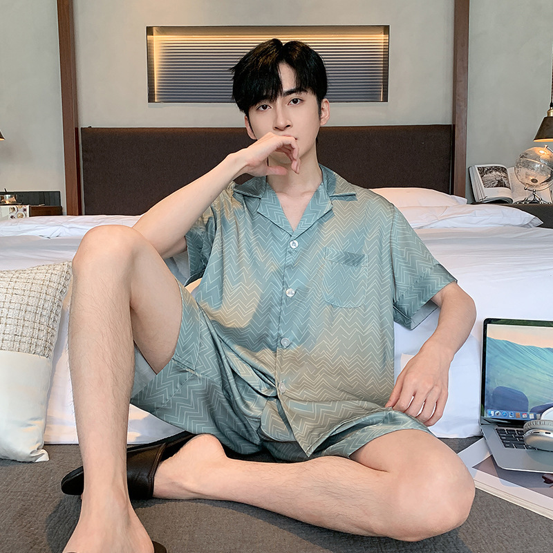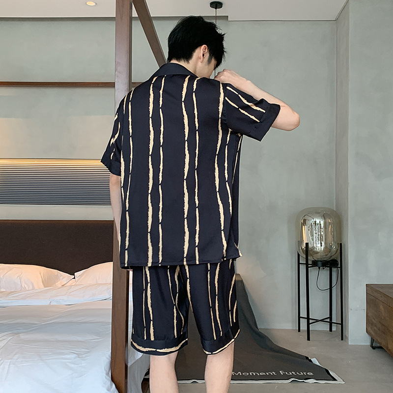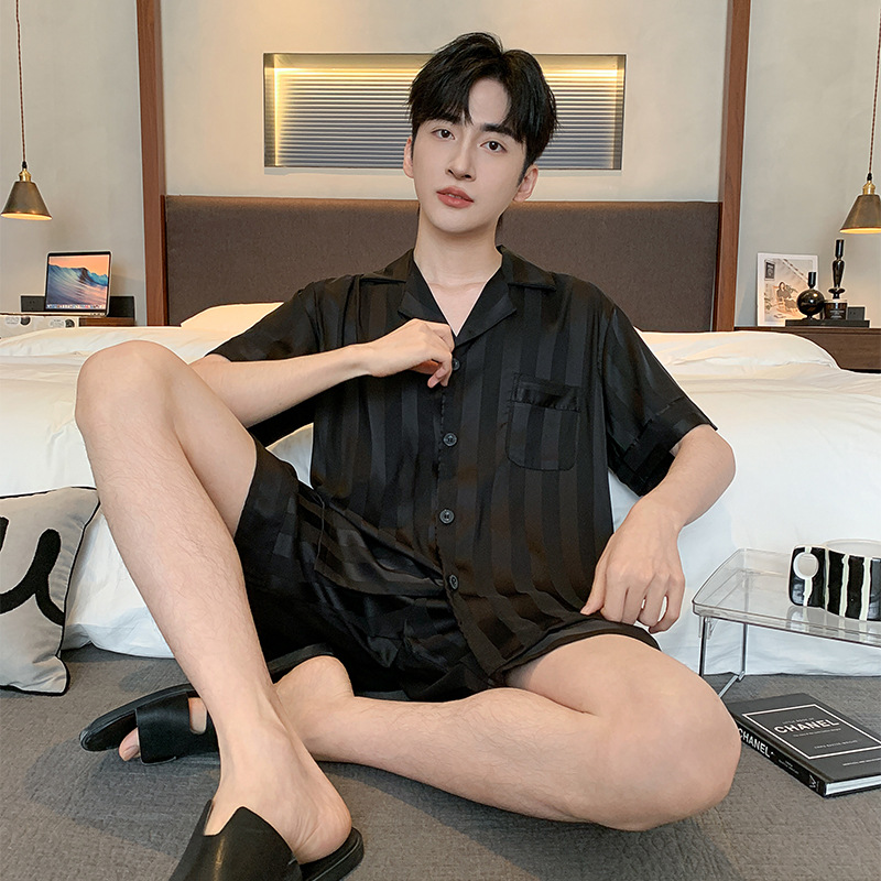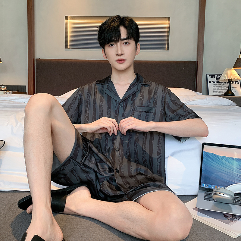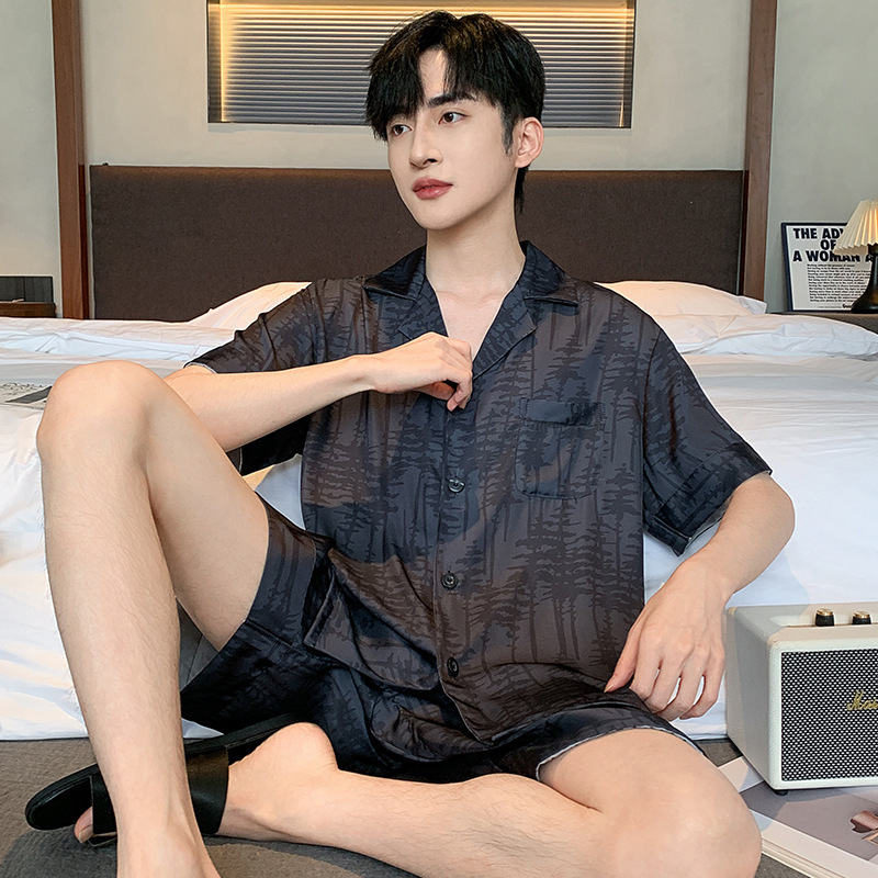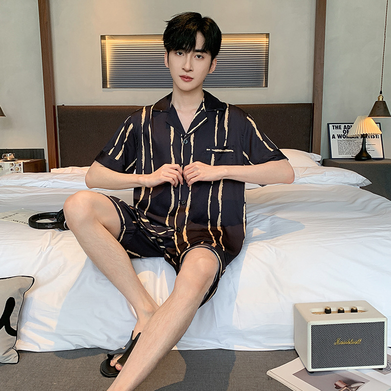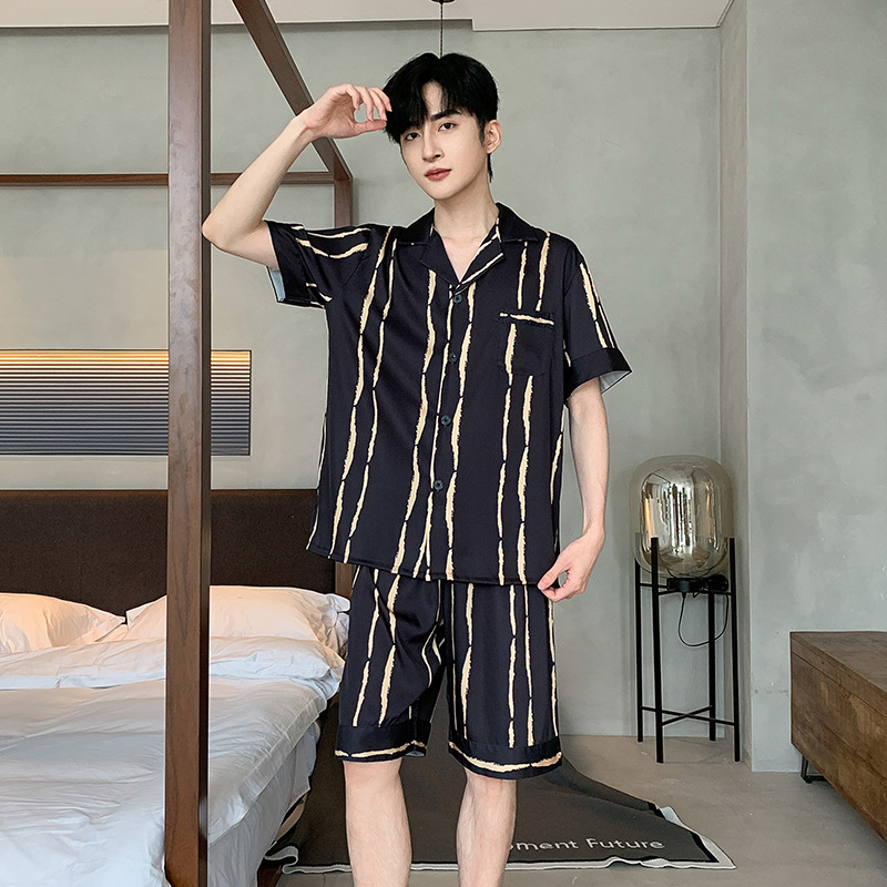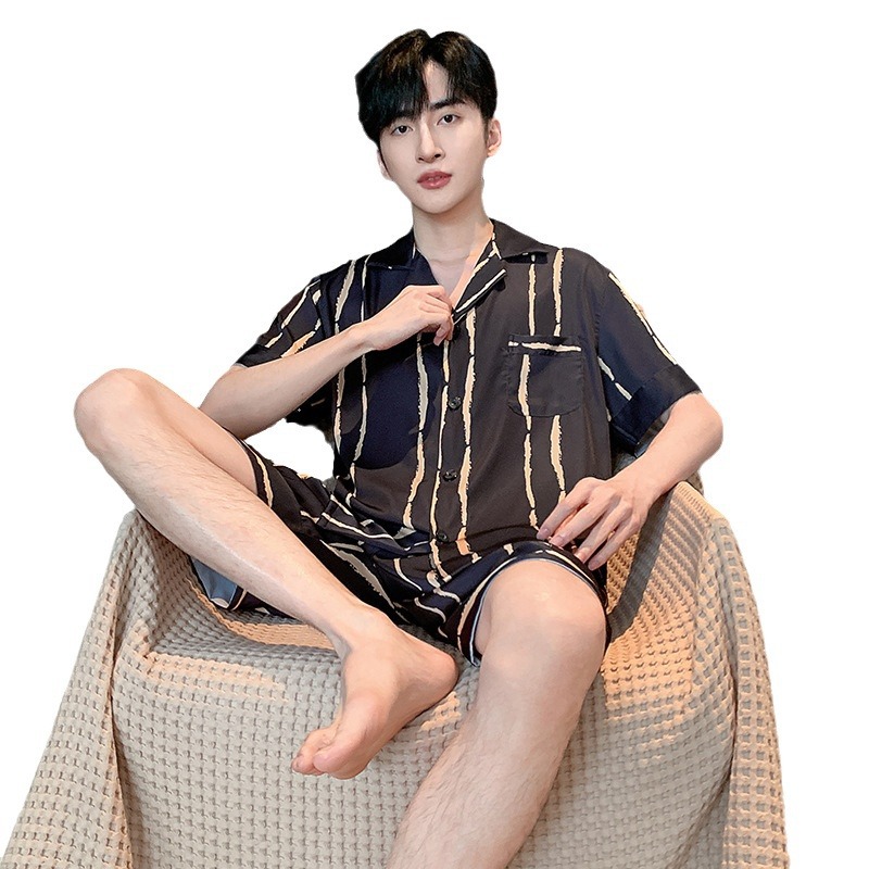 Главная страница > Мужские пижамы из ледяного шелка с короткими рукавами, ощущение прохлады летом, большие размеры, тонкий стиль, новая модель 2025 года, очень большой размер B19-504.