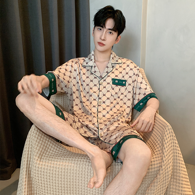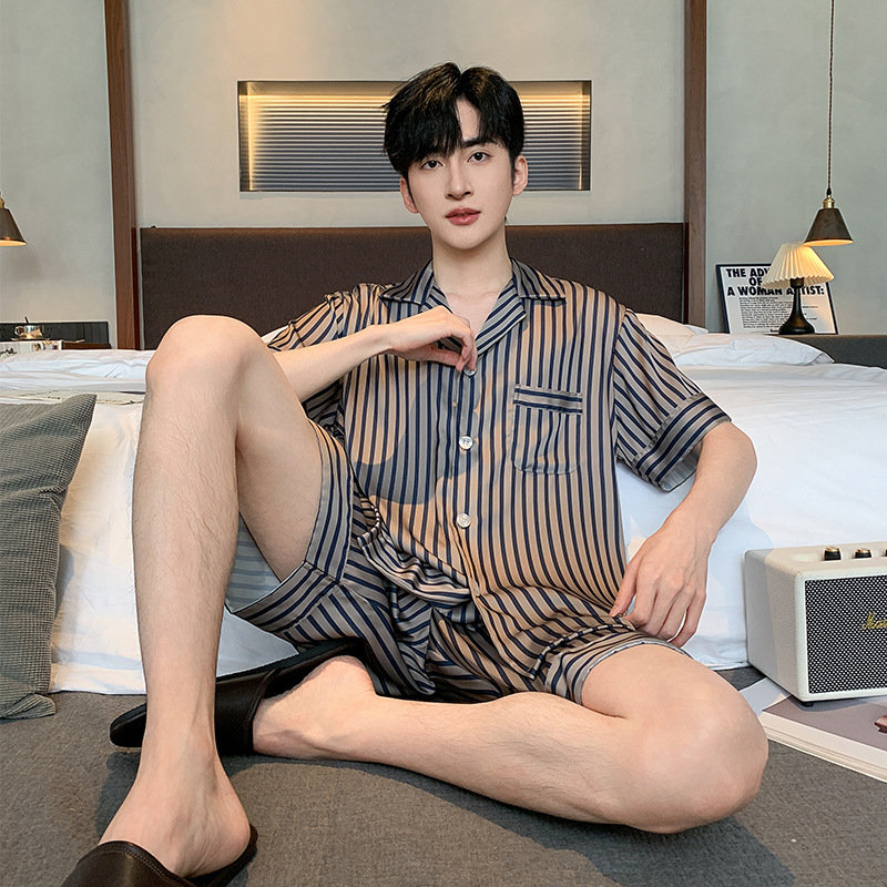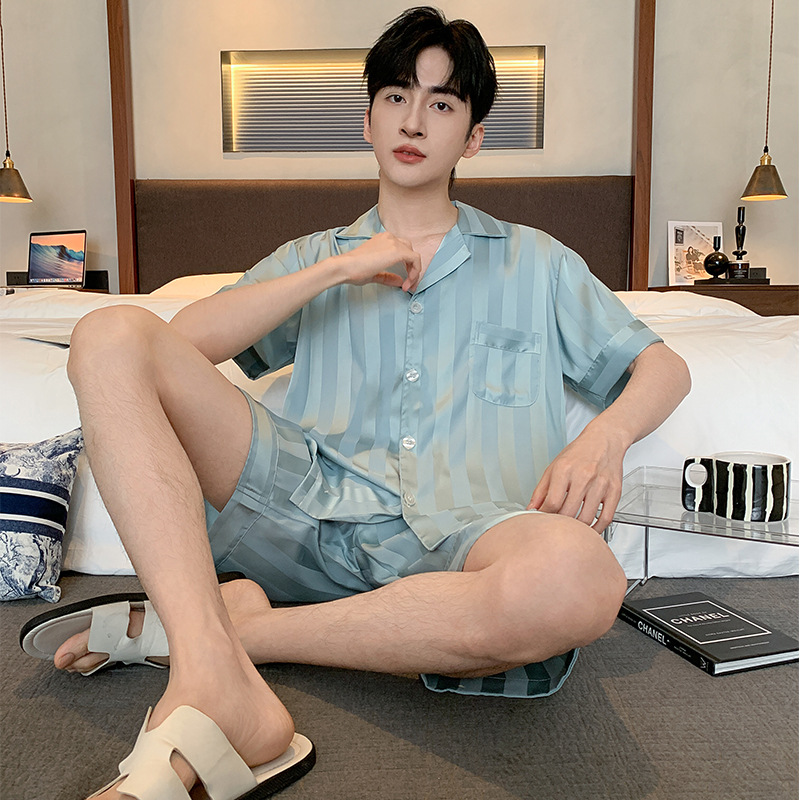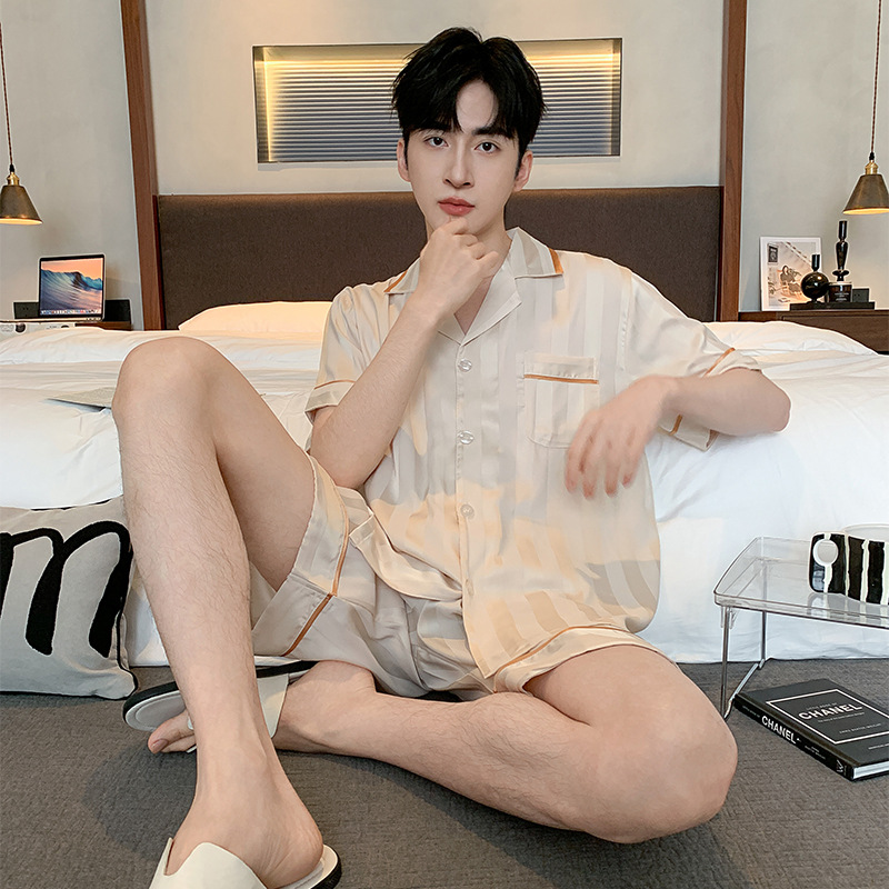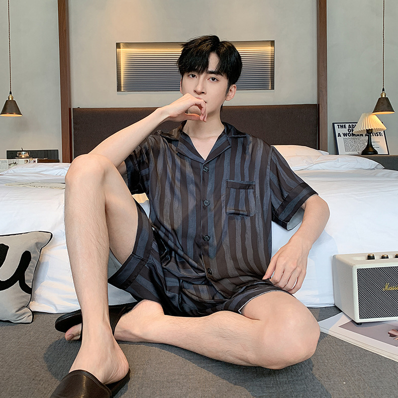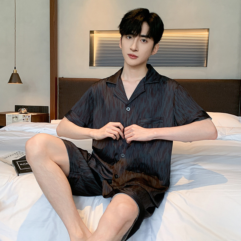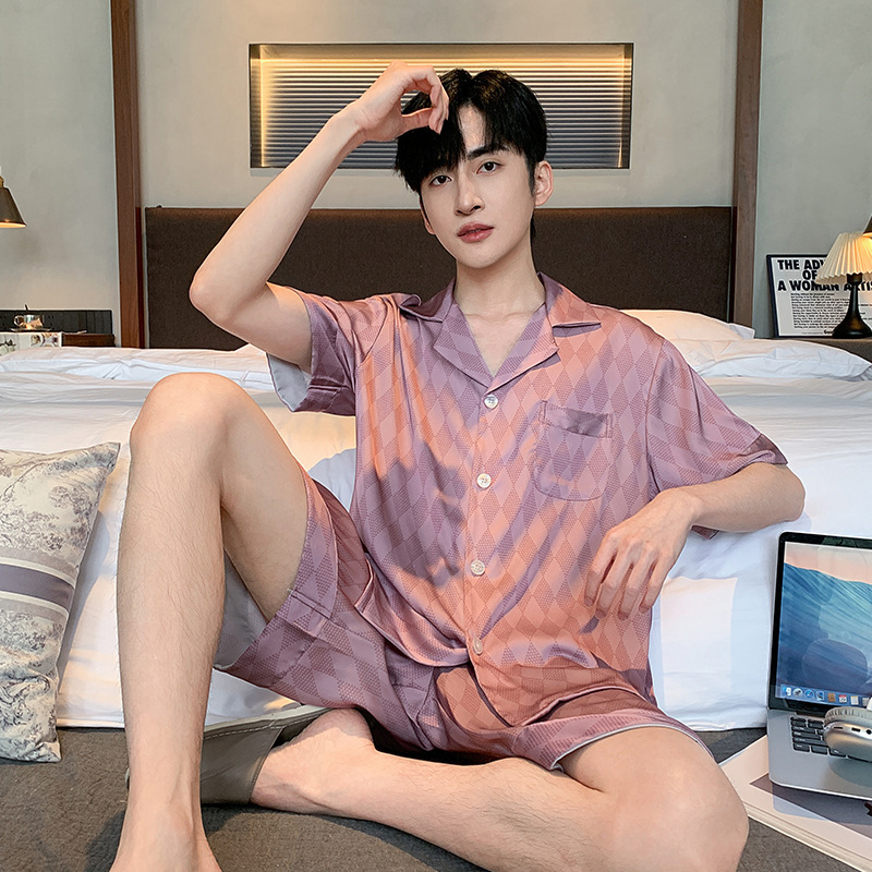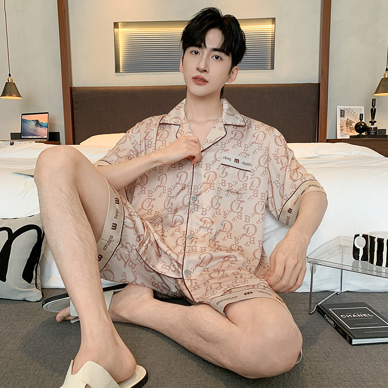 Главная страница > Мужские пижамы из ледяного шелка с короткими рукавами, ощущение прохлады летом, большие размеры, тонкий стиль, новая модель 2025 года, очень большой размер B19-504.