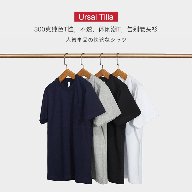 Главная страница > 300 грамм супер тяжелая футболка с карманом, Плотная хлопковая однотонная мужская и женская нижняя рубашка