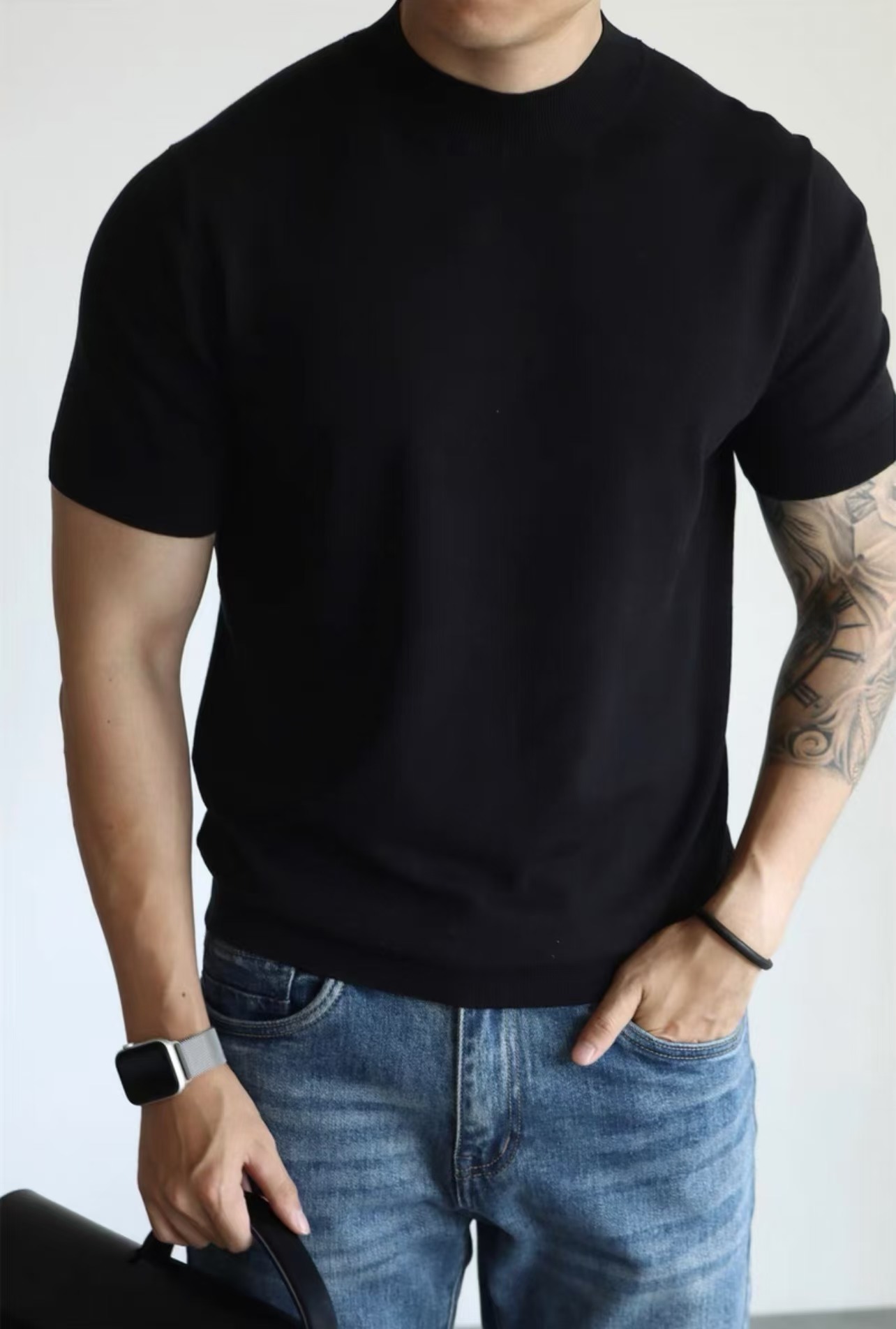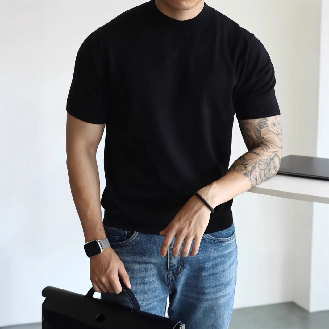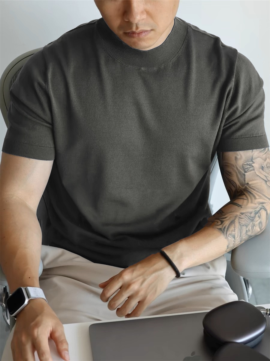 Главная страница > Трикотажная футболка с короткими рукавами с половинным воротником для мужчин 2025 новый премиум-стиль белый тонкое тело, тонкое тело, стиль ретро топ