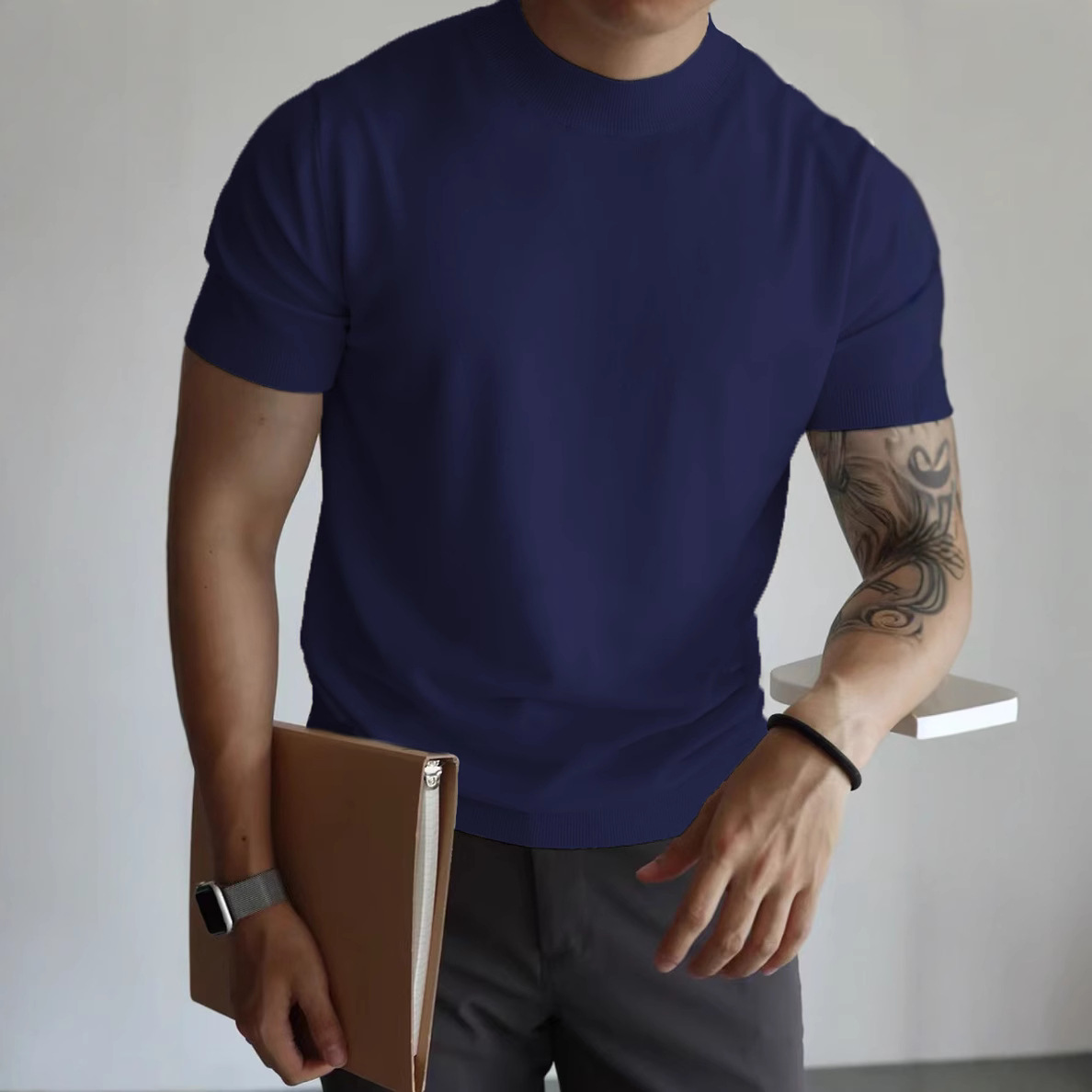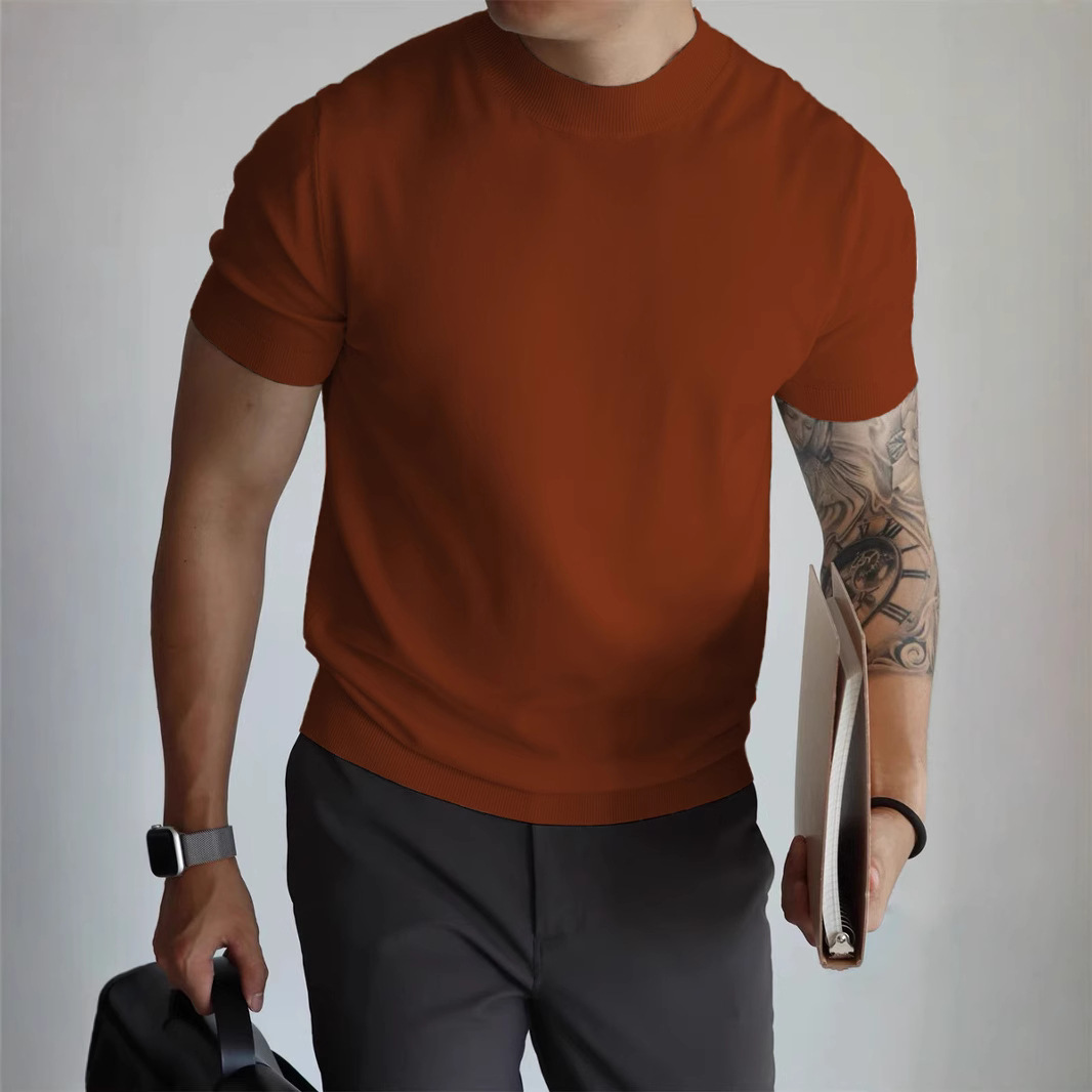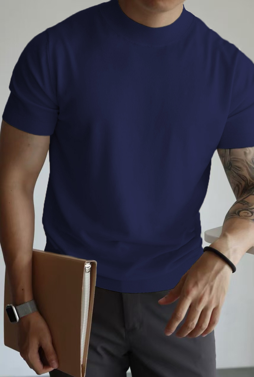 Трикотажная футболка с короткими рукавами с половинным воротником для мужчин 2025 новый премиум-стиль белый тонкое тело, тонкое тело, стиль ретро топ
