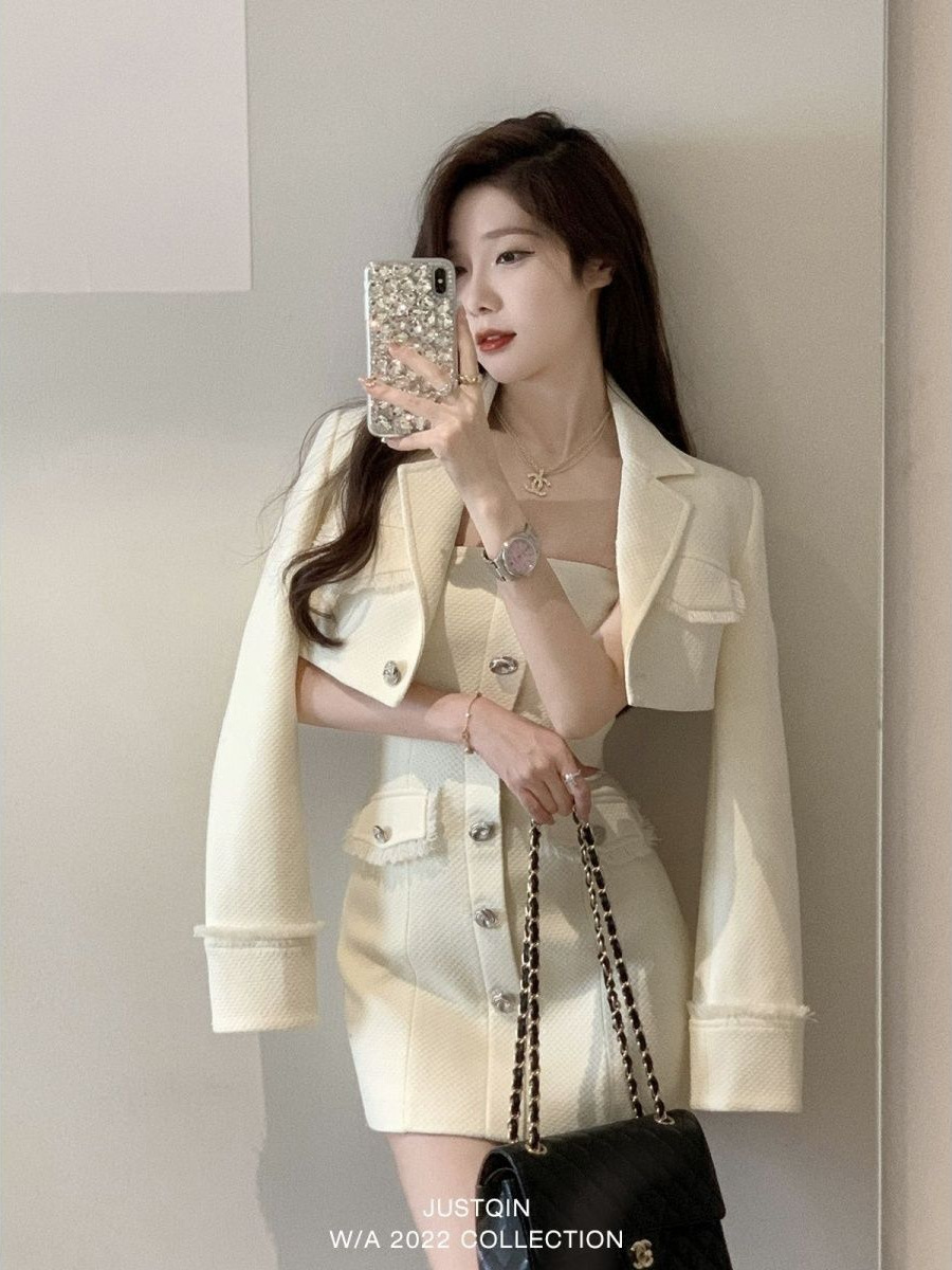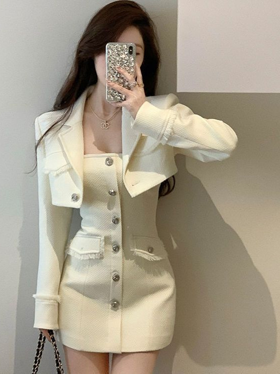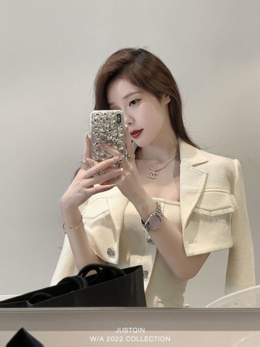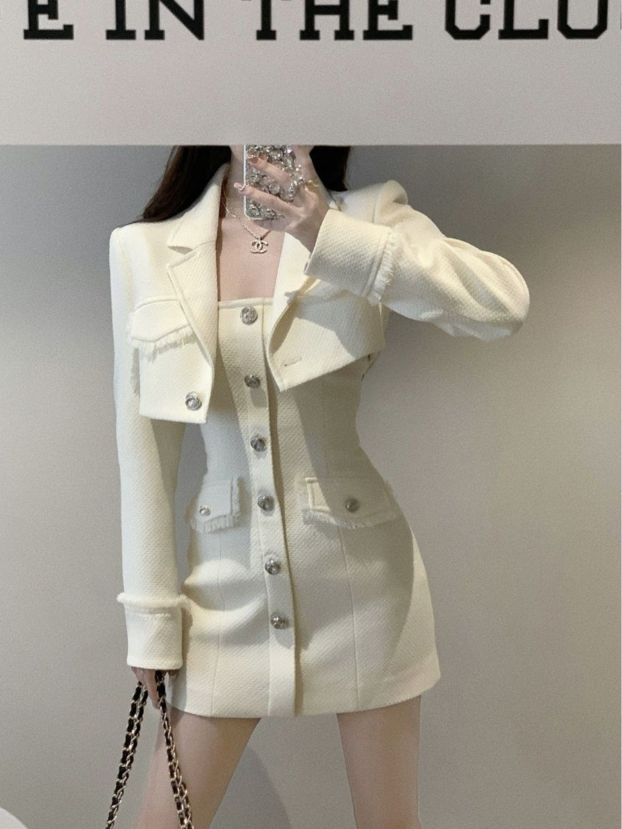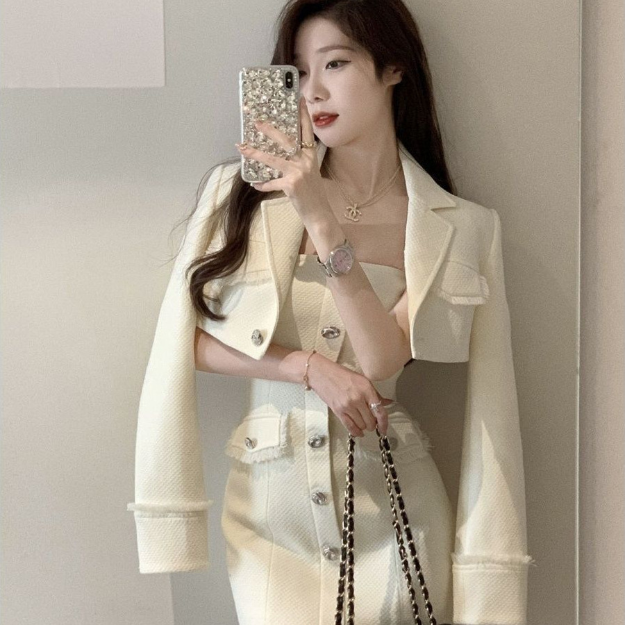 Главная страница > Little Xiangfeng Костюм Женский 2024 Осенний Женский Премиум Купальница с бахромой с высокой талией Тонкая юбка из двух частей