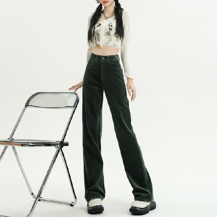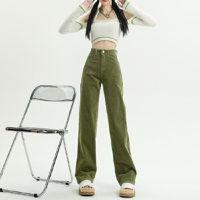 Главная страница > 2024 весенне-осенние популярные травяно-зеленые вельветовые широкие брюки, женские ретро брюки с высокой талией, повседневные длинные прямые брюки