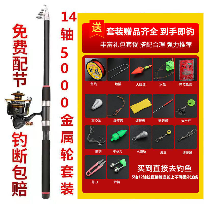 2.4m морская удочка + 5-осевая рыболовная катушка типа 200.