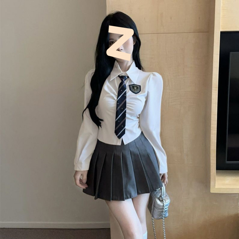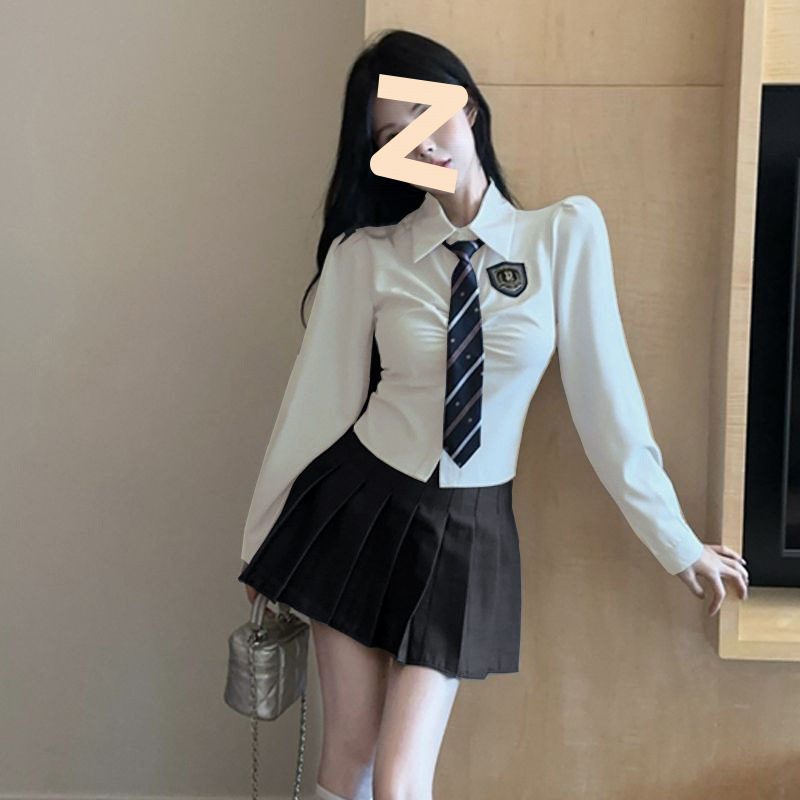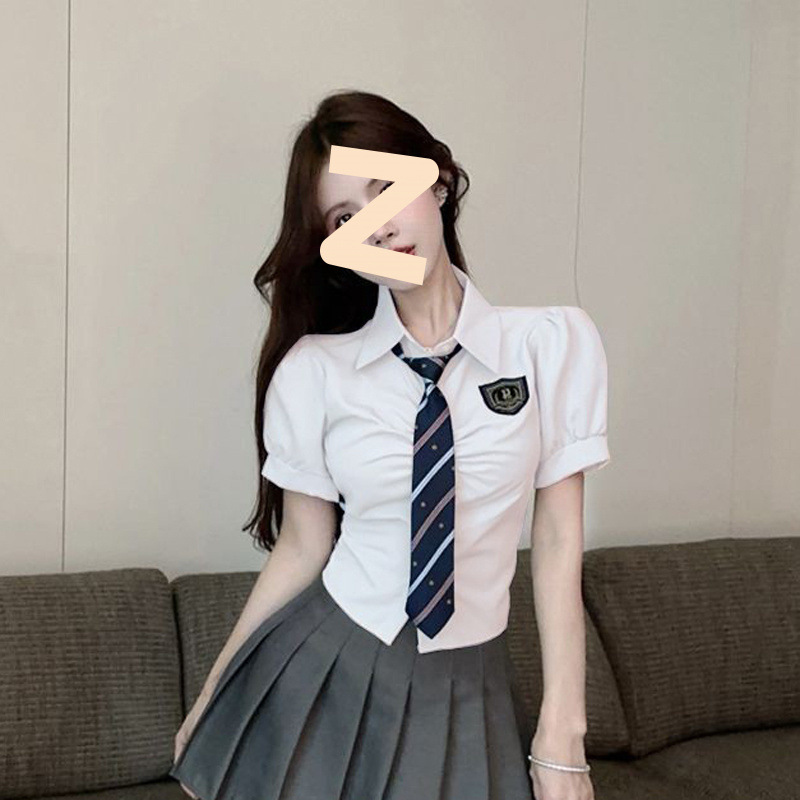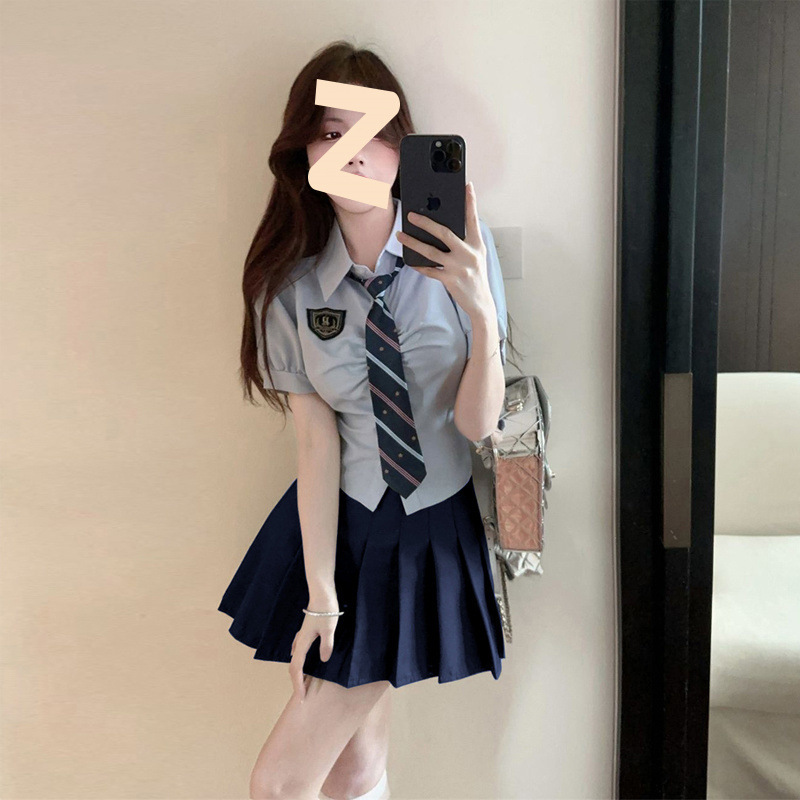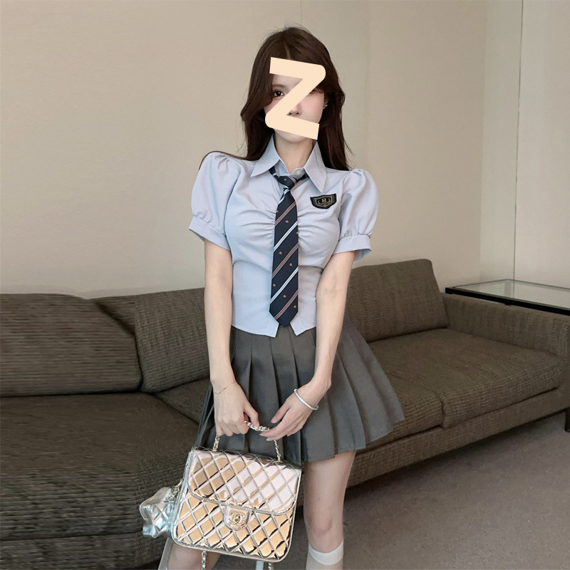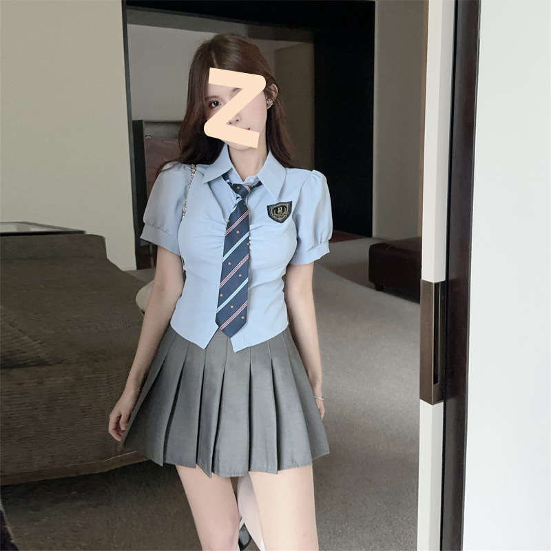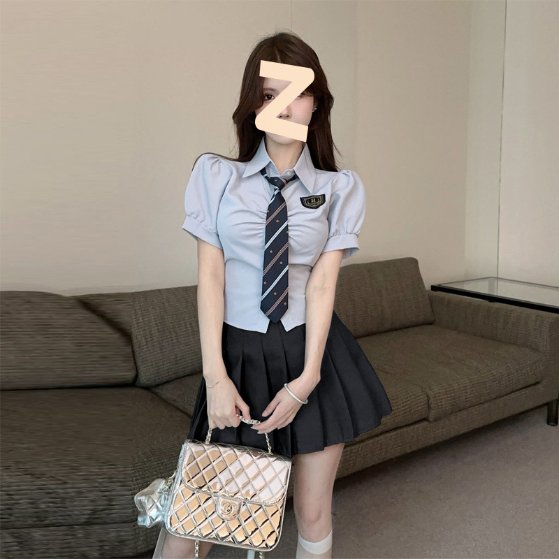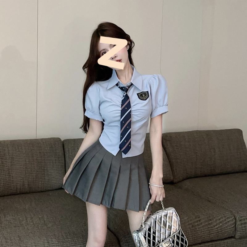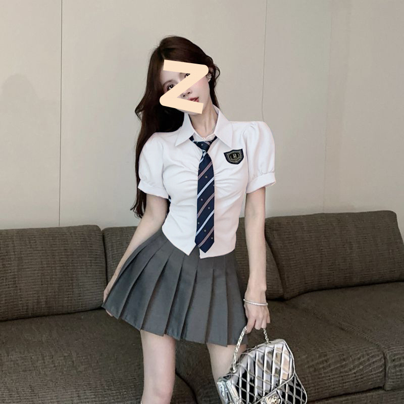 Главная страница > Миниатюрная рубашка с короткими рукавами в студенческом стиле, уменьшающая возраст, универсальная плиссированная юбка с высокой талией, универсальный костюм JK, женская одежда