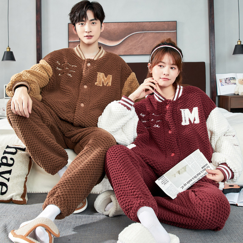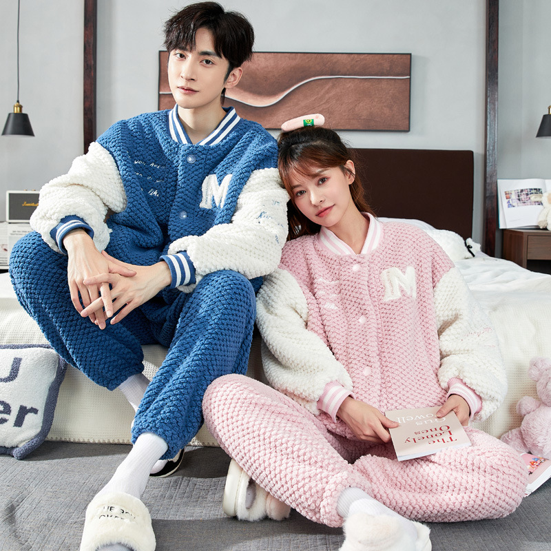 Главная страница > Женская Пижама для пар, осенне-зимний коралловый флис, утолщенный фланелевый зимний бейсбольный костюм на флисовой подкладке, домашняя одежда, мужской костюм