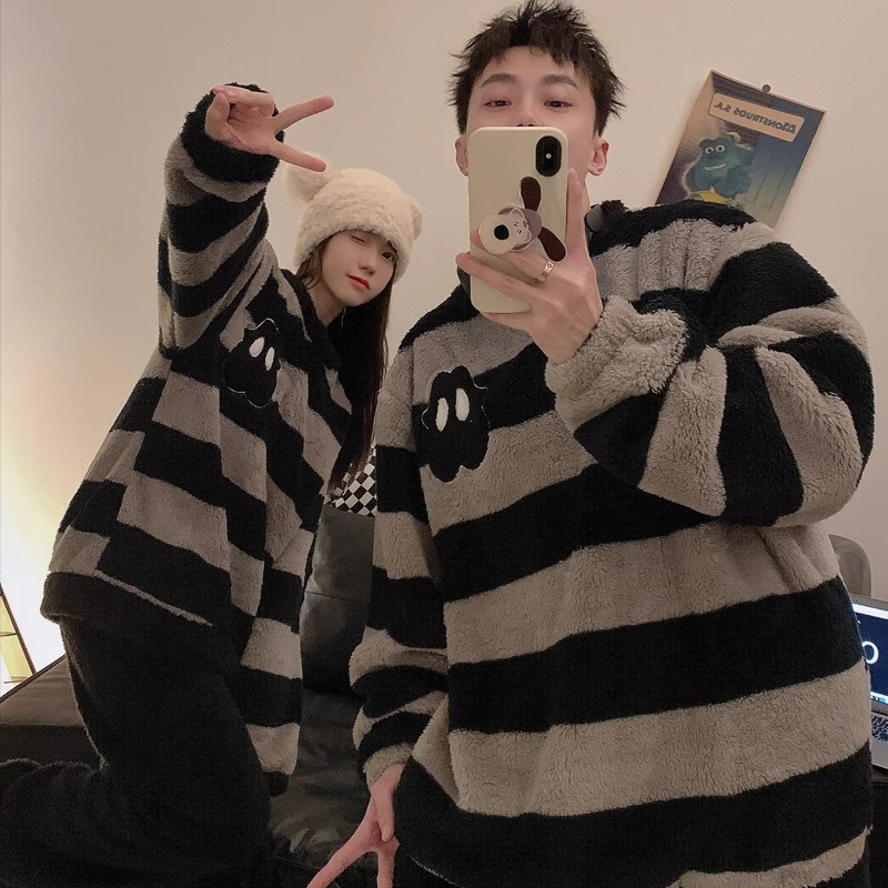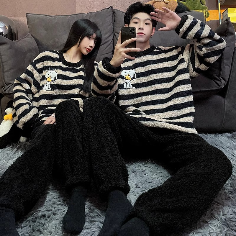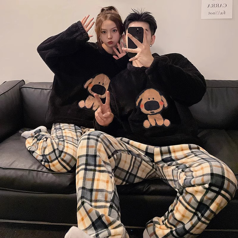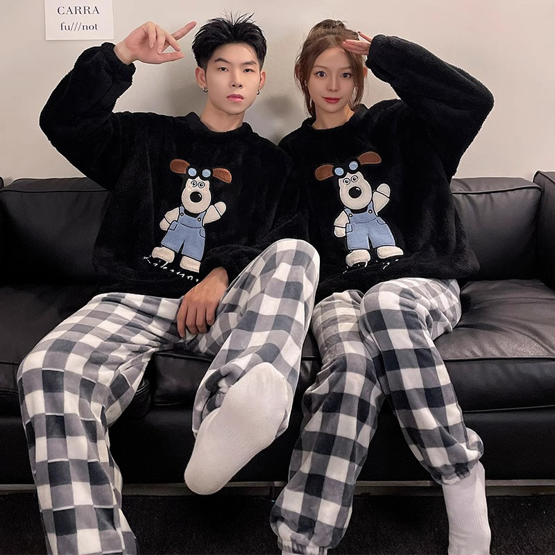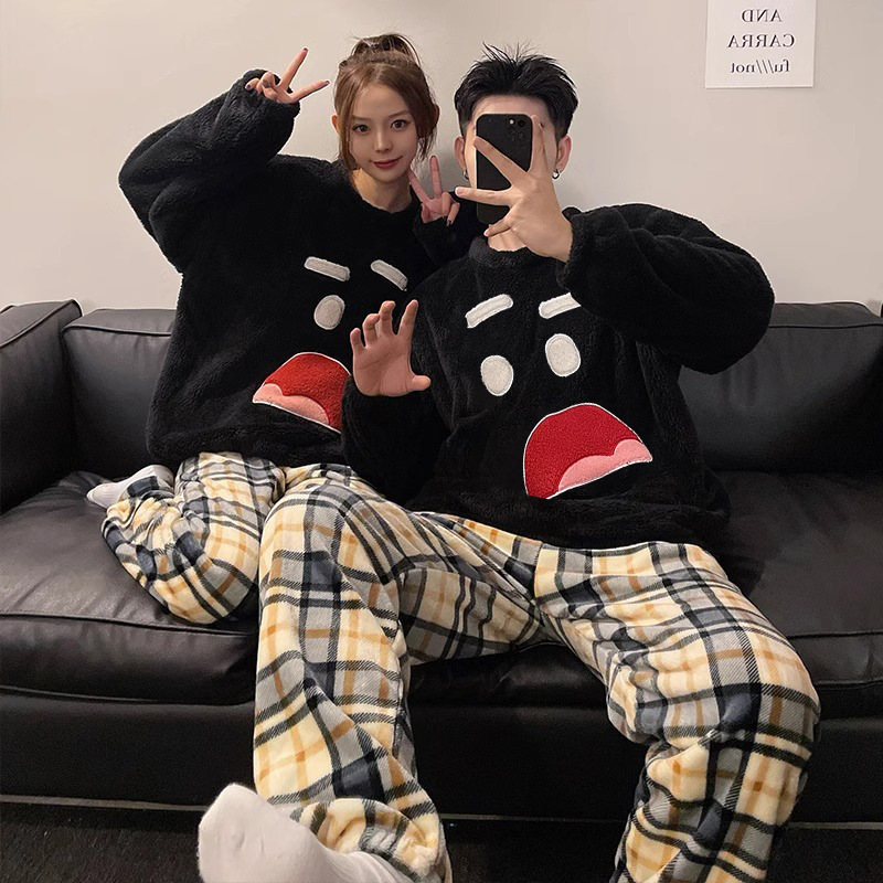 Главная страница > Осенне-зимние новые утолщенные пижамы на флисовой подкладке для пар, Женская домашняя одежда, мужскую свободную версию можно носить снаружи фланелевого костюма
