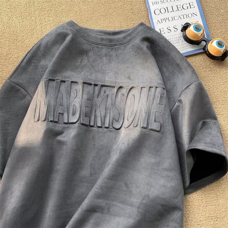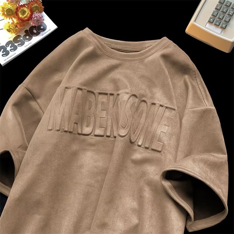 Тяжелые замшевые футболки для мужчин с короткими рукавами