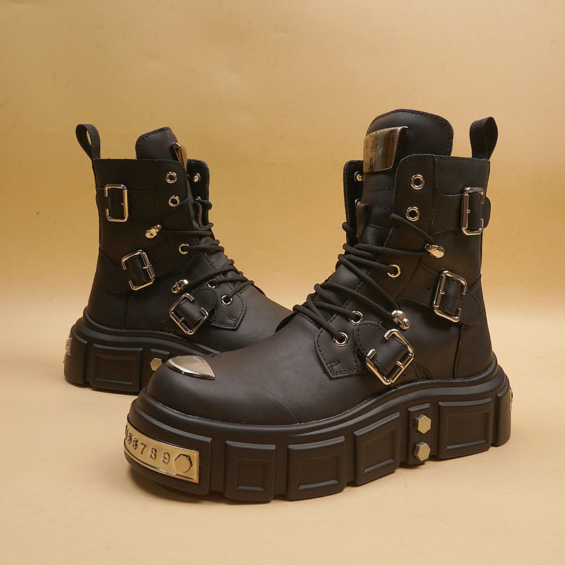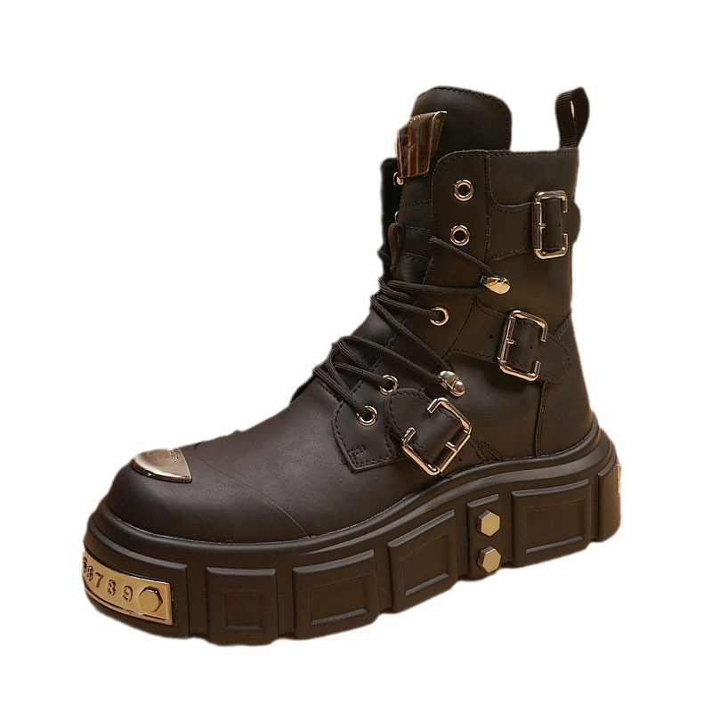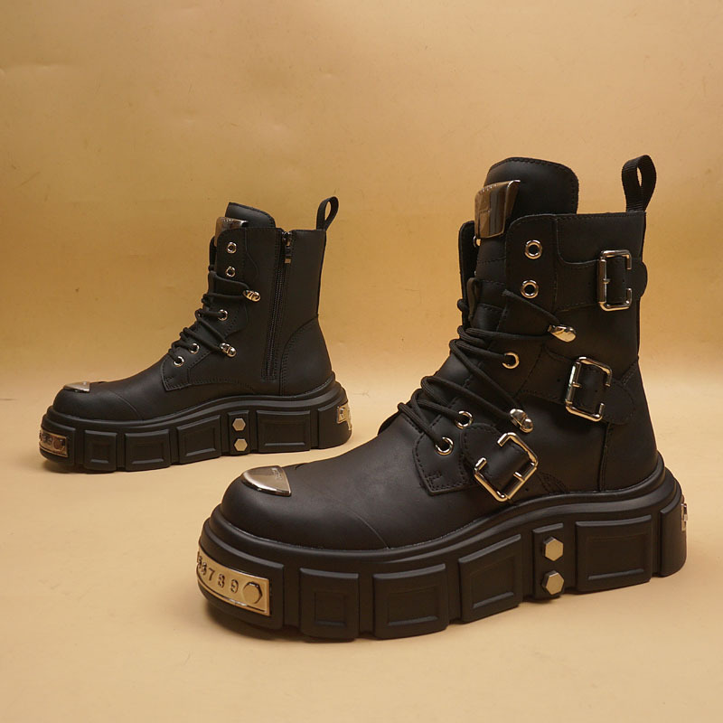 Главная страница > Новые осенне-зимние мотоциклетные ботинки для мужчин, стильные модные мужские ботинки с заклепками и внутренним утолщением, высокие кожаные ботинки на толстой подошве.