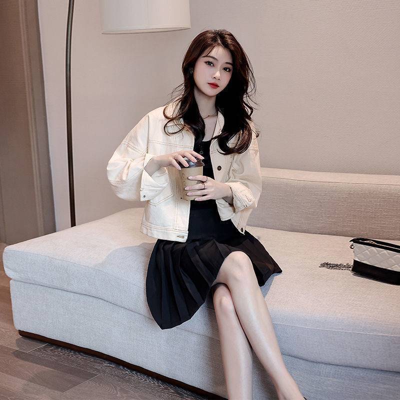 Главная страница > Стильная короткая джинсовая куртка женская весна и осень 2025 года корейская версия новая индивидуальная куртка сюртук маленький свободный топ