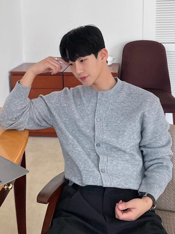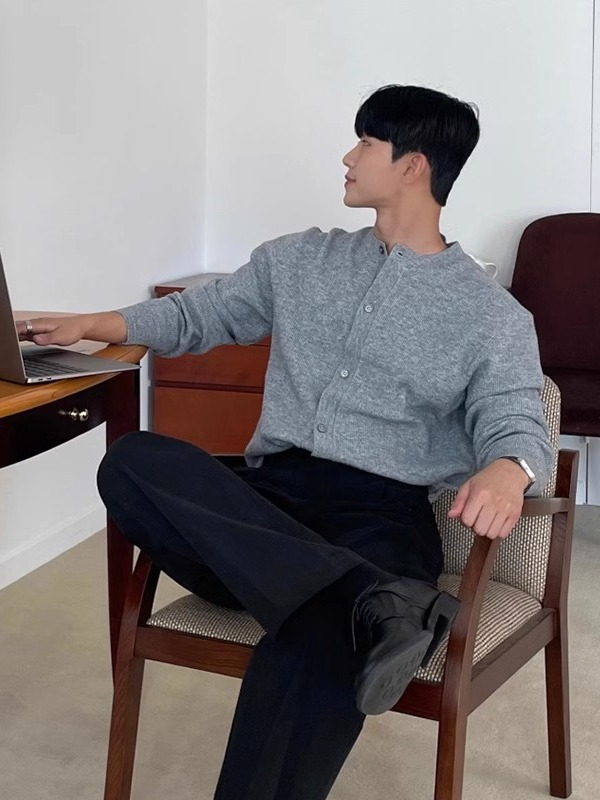 Главная страница > Однотонный свитер в Корейском стиле в ленивом стиле с круглым вырезом, мужской осенне-зимний вязаный кардиган, универсальная майка, Топ
