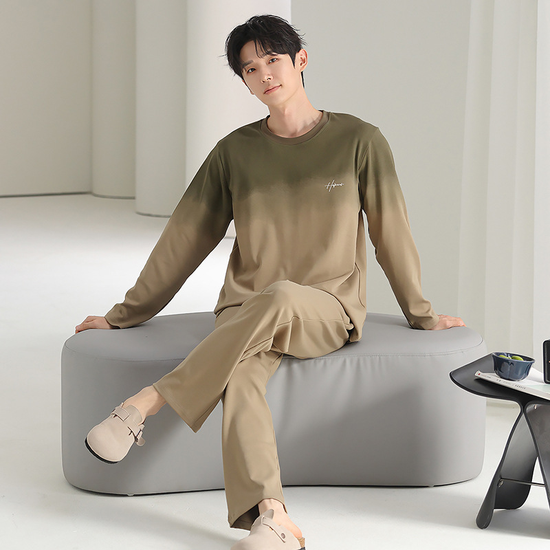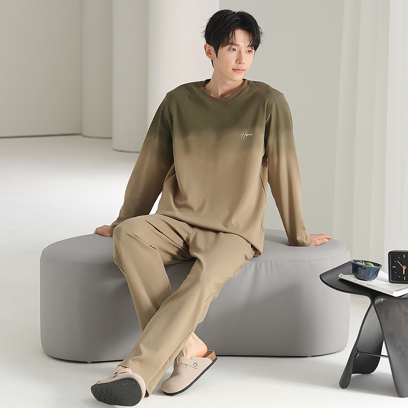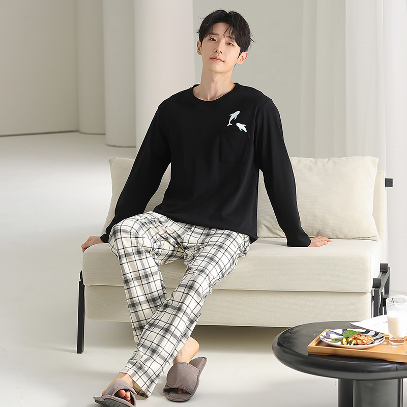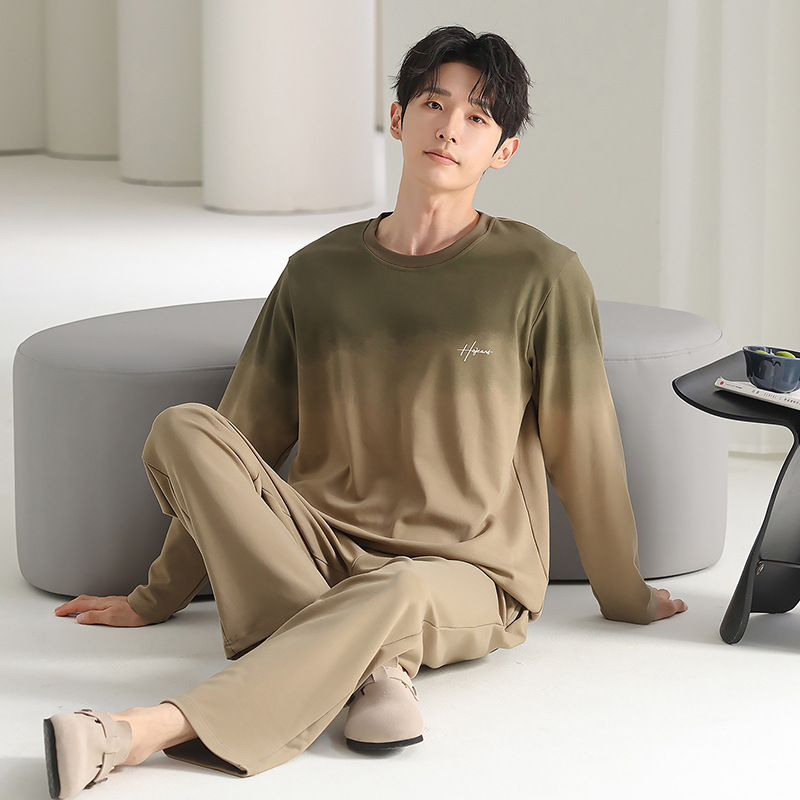 Главная страница > 【Чистый хлопок】Мужская осенняя пижама с длинными рукавами, простой повседневный свободный крой, большие размеры, новый домашний комплект из двух предметов в корейском стиле