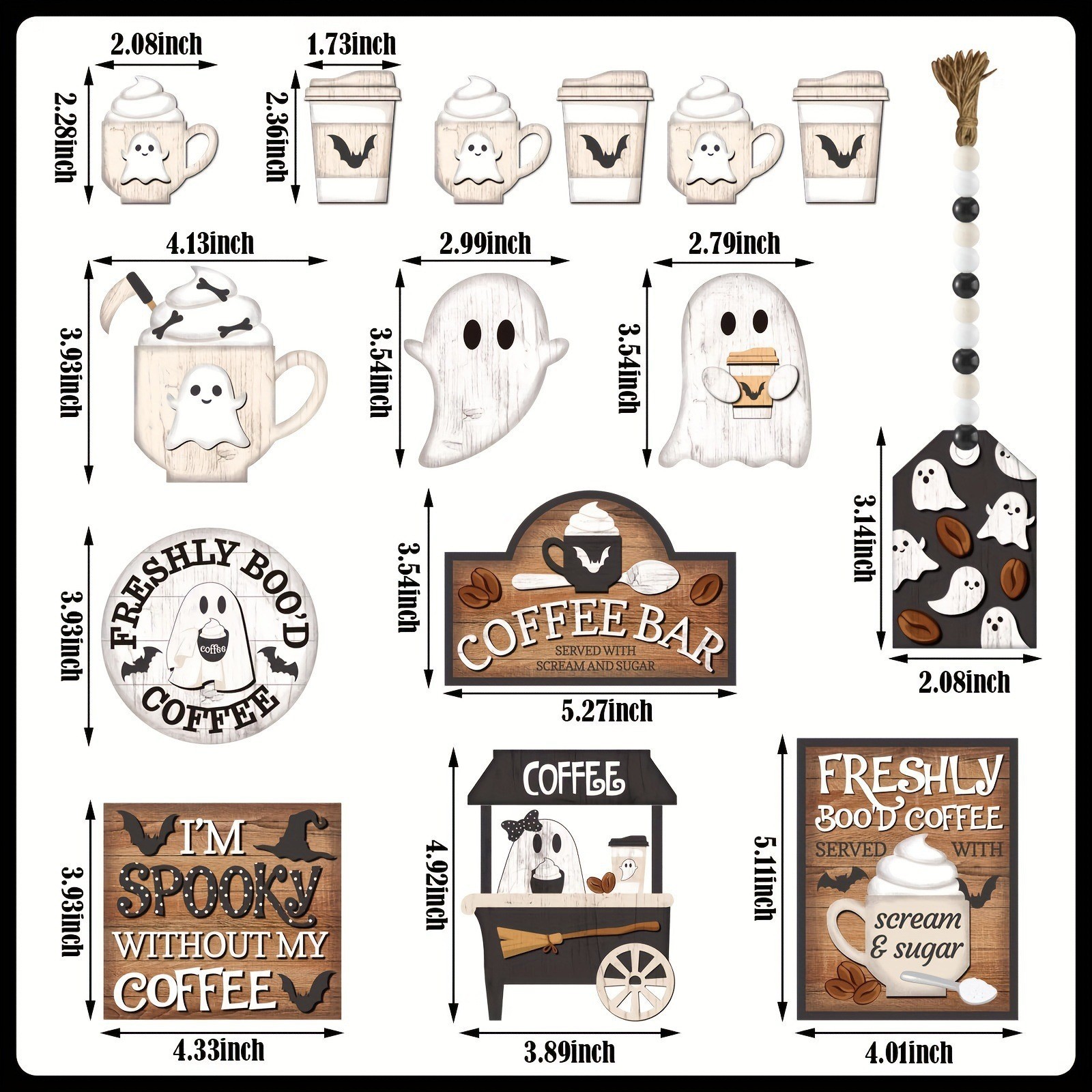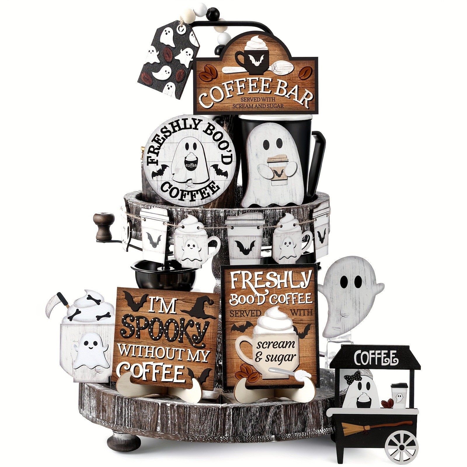 Главная страница > 15 шт., многоуровневый декор для подноса на Хэллоуин, декор в виде кофейного призрака, деревянный знак, декор для кофейни в деревенском доме