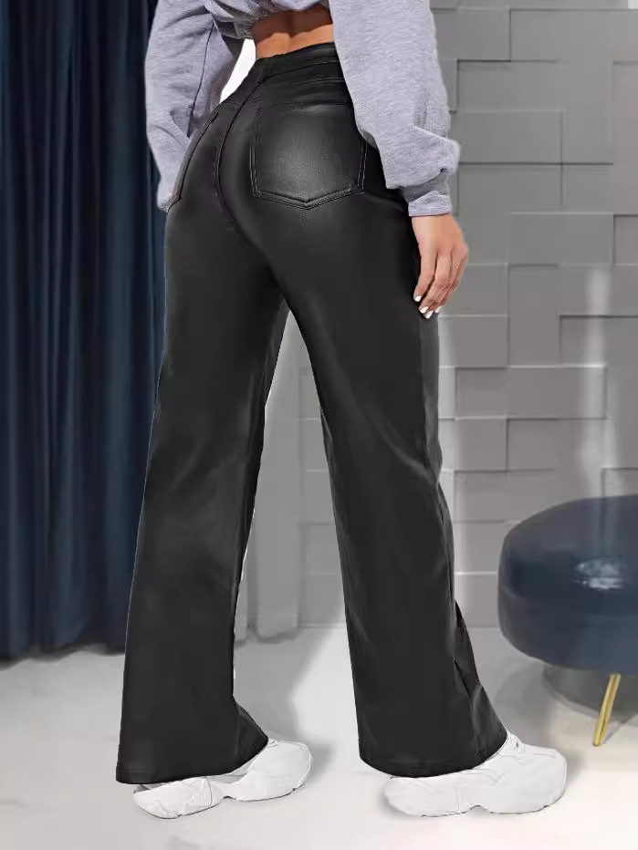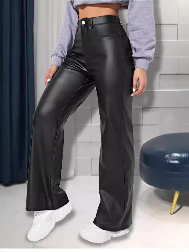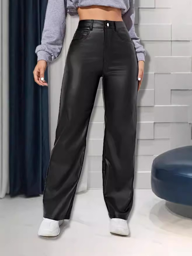 Главная страница > Женские брюки европейские и американские прямые брюки AliExpress брюки женские осень-зима pu кожаные брюки с высокой талией широкие брюки повседневные брюки женские молнии