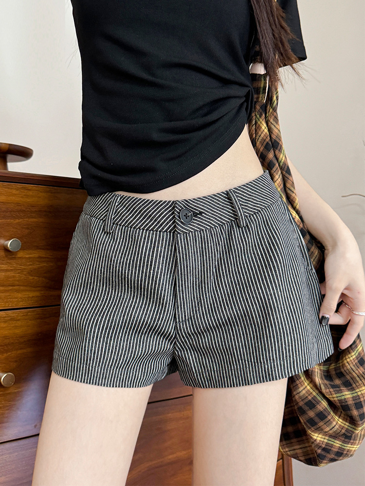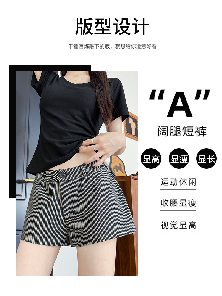 Главная страница > Черно-белые полосатые женские шорты, летние тонкие повседневные шорты трапециевидной формы с низкой талией и широкими штанинами