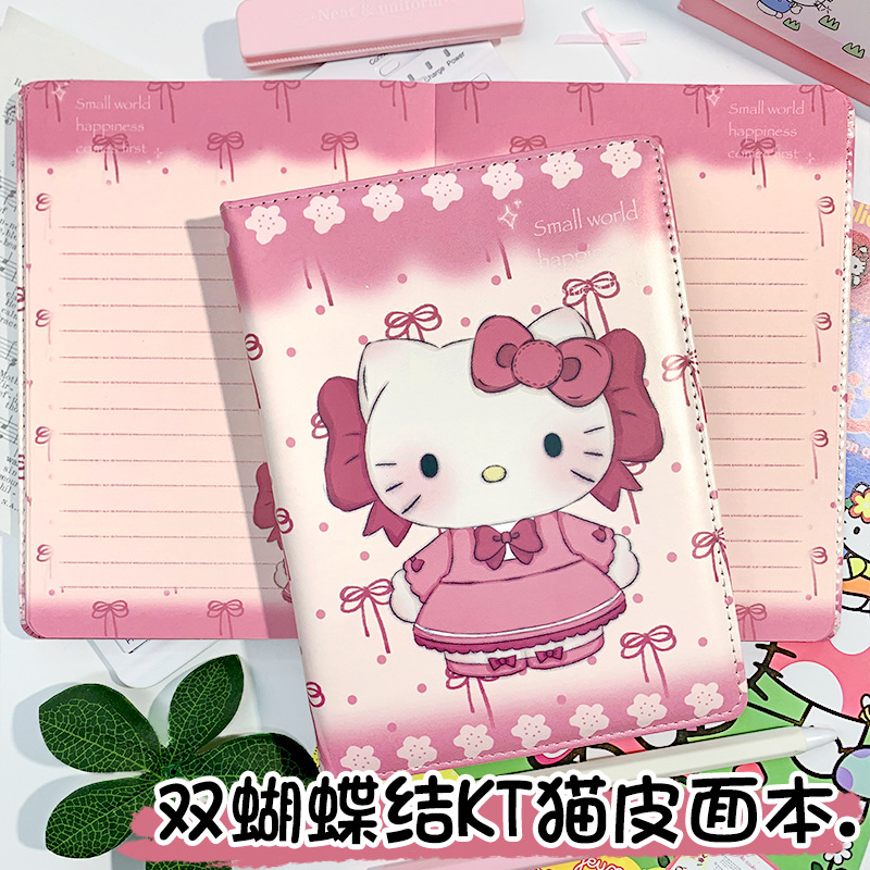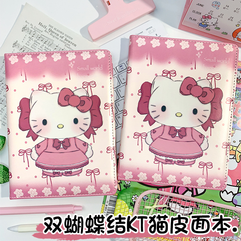 Главная страница > Сладкий двойной бант KT Cat A5, утолщенный цветной кожаный блокнот Hello Kitty, ручной кожаный блокнот